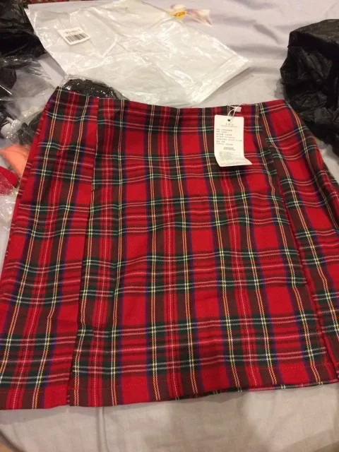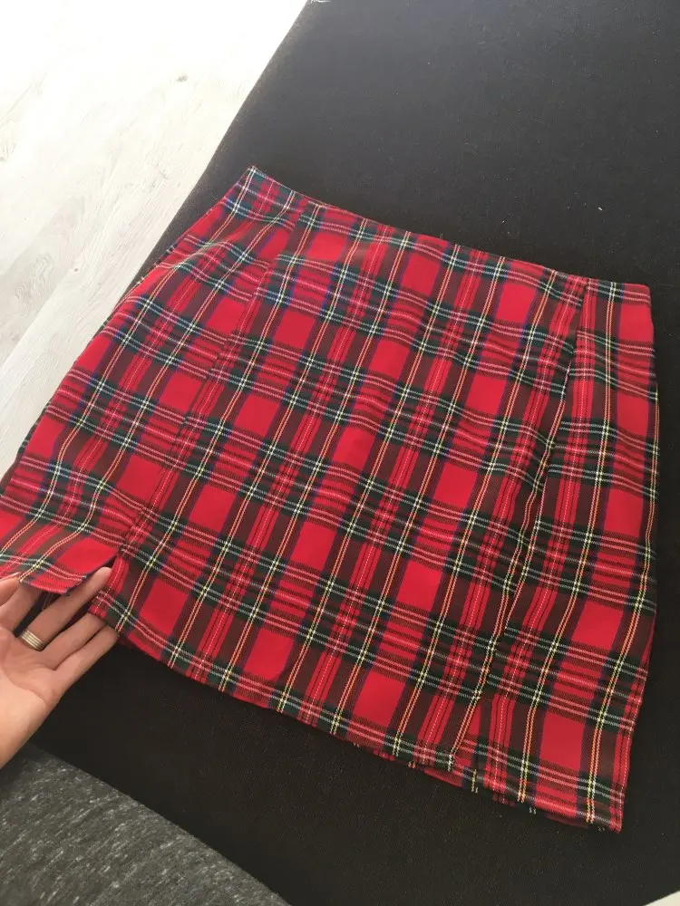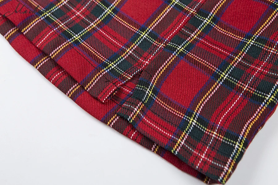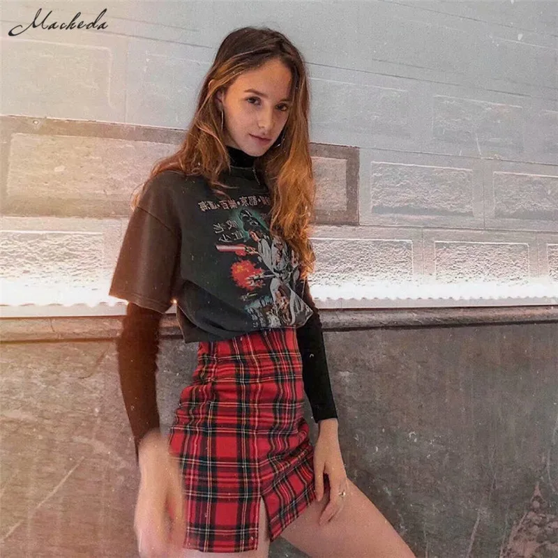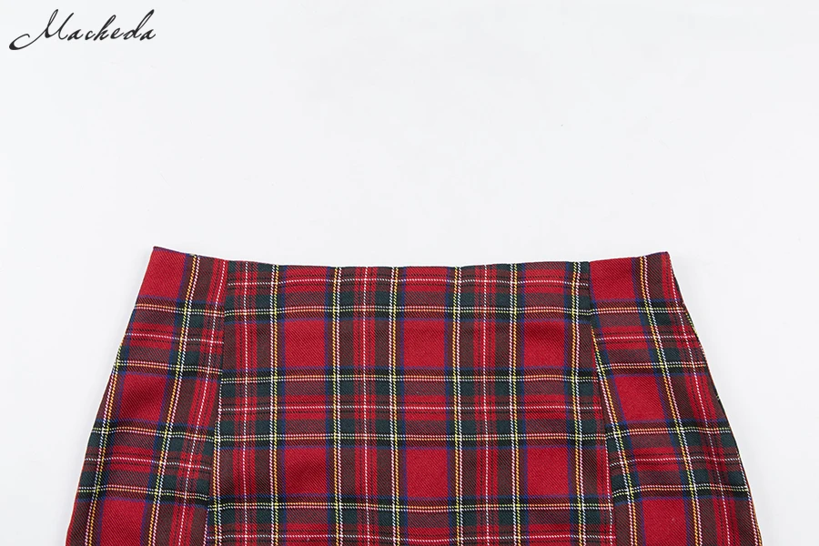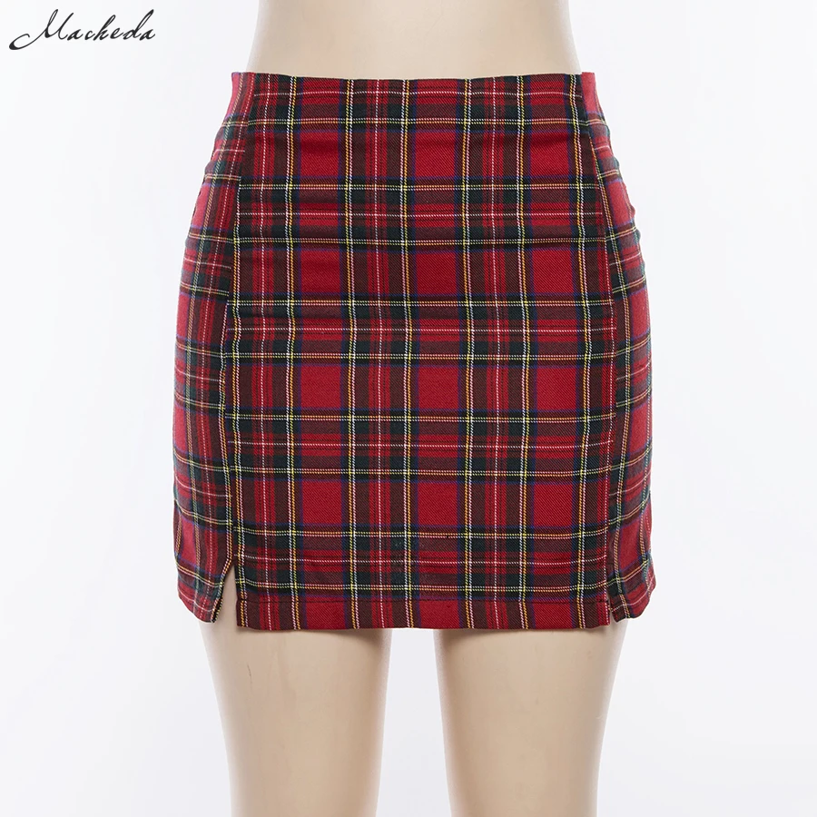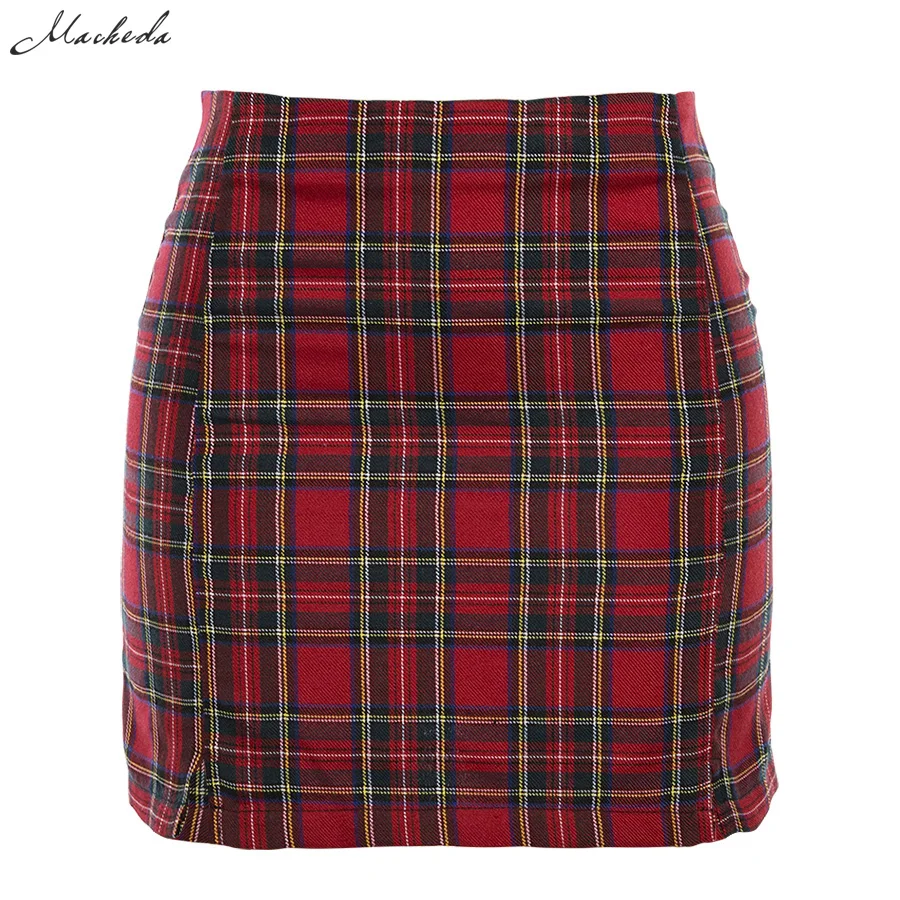 New Arrival Womens Casual Skirt Red Plaid Slim High Waist Zipper Mini Pencil Skirt L0044
