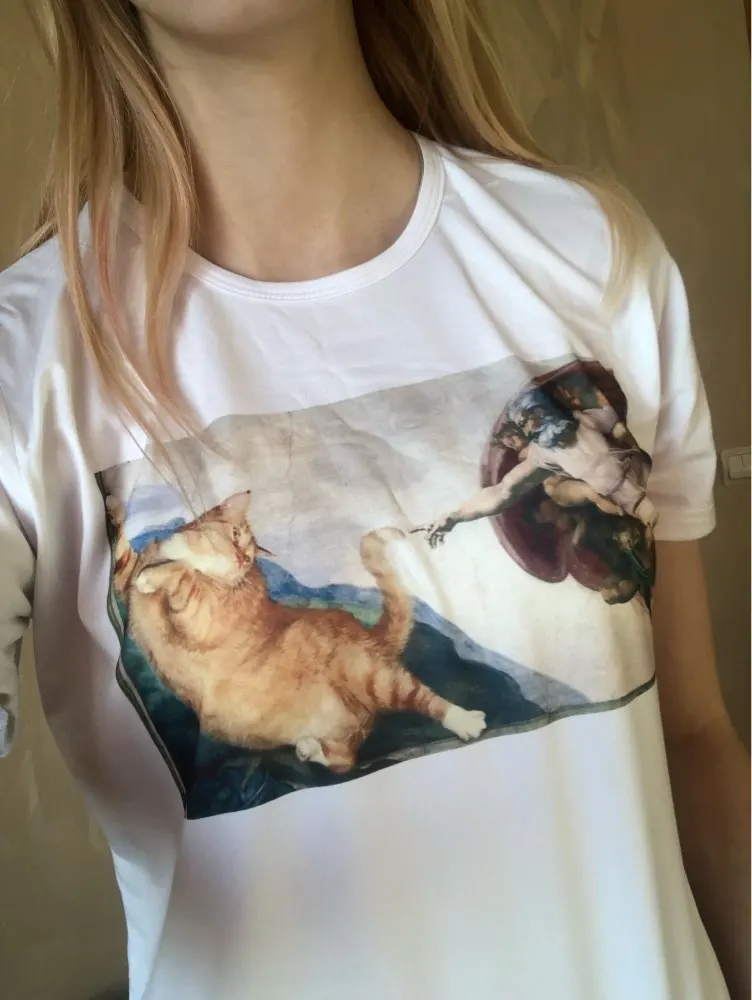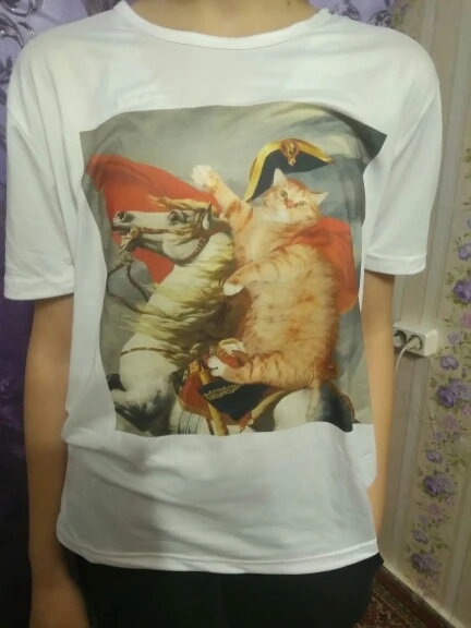 New Funny Cat Casual Short Sleeve Kawaii Cats White Tshirt L0144