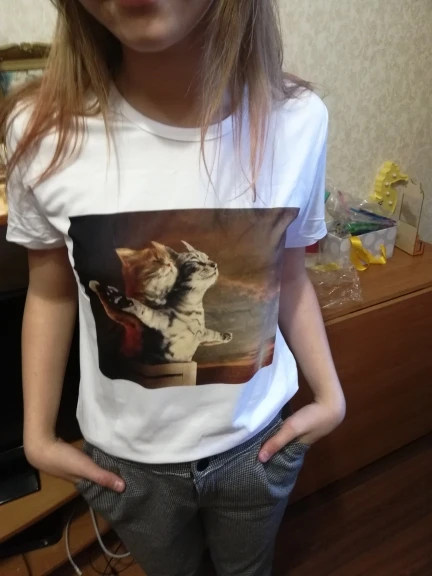 Excellent T-shirt, took my daughter to a height of 162, everything is fine print photo printing, for such money more than satisfied) delivered in 12 days. Thanks to the store. We'll order more.