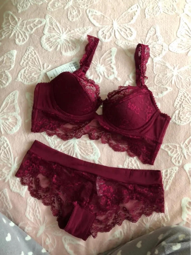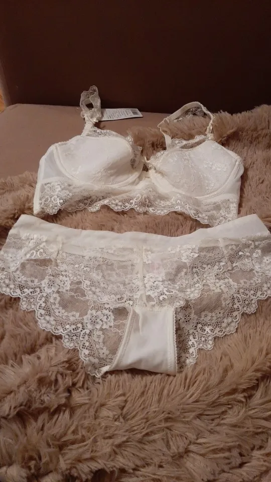 Beautiful set, details are very delicate. It is very good quality. I followed the instructions on the page to order the size and i'm left to measure. I'm a 34b in chile. The truth that impressed me very much the quality of the product. In my country it would cost me more than half a set like that.