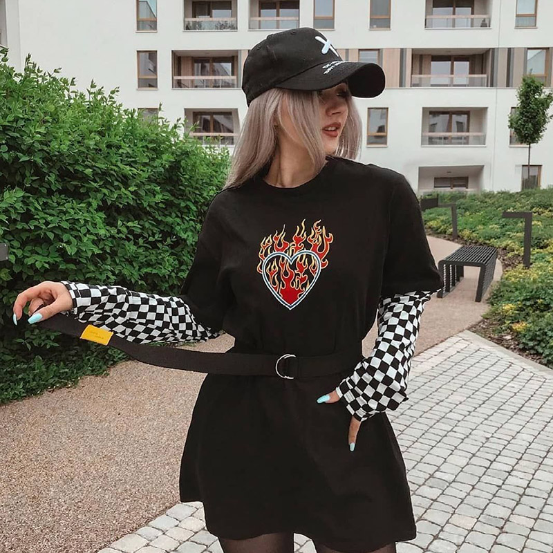New Women Harajuku Tshirt Flame Heart Print Women Tshirt Funny Quotes Latter Printed L0123
