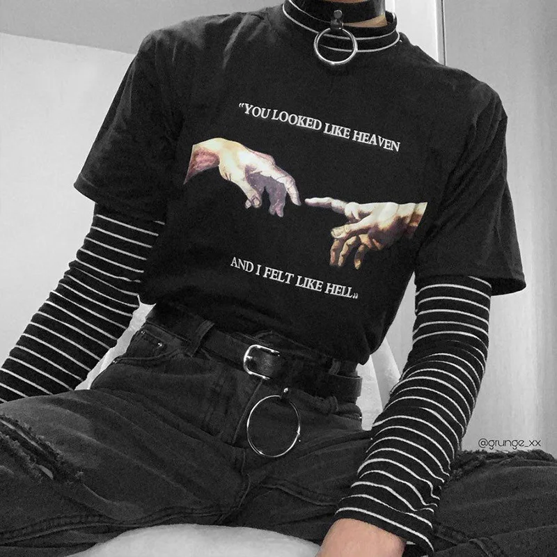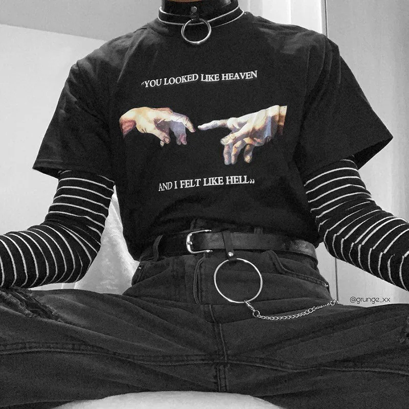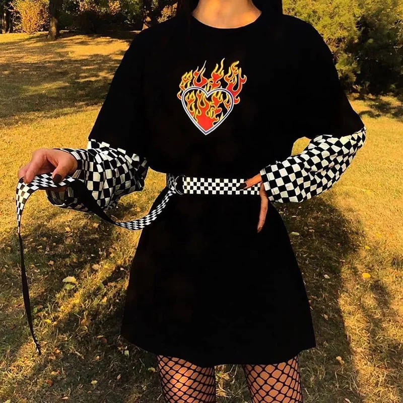 New Women Harajuku Tshirt Flame Heart Print Women Tshirt Funny Quotes Latter Printed L0123