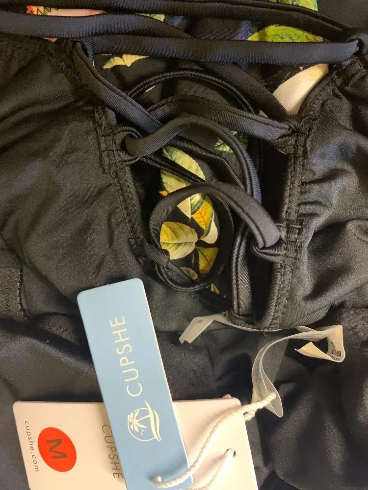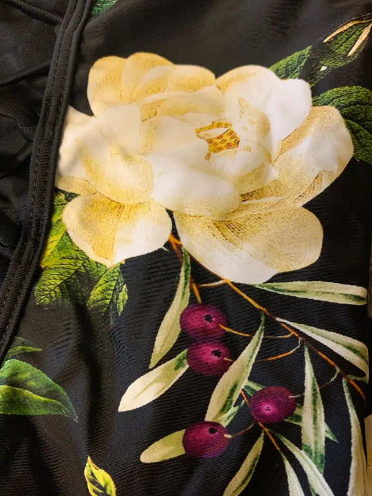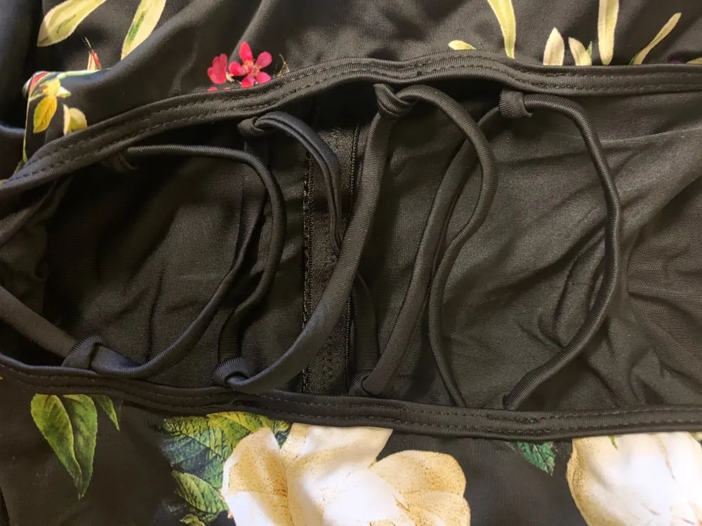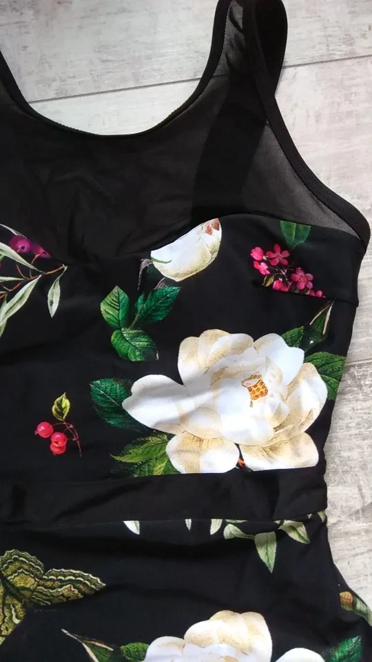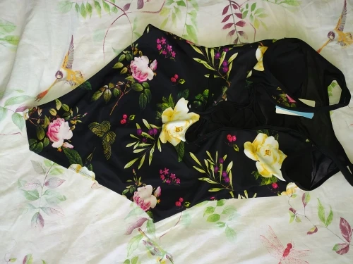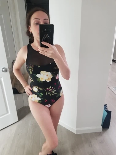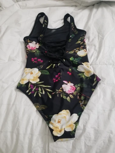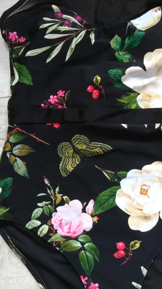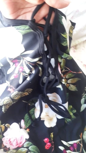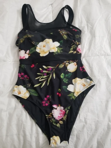 Swimsuit is happy, all as in the photo. The quality of the fabric and tailoring is excellent. Very helpful feedback on them and was intended. Size L approached the Ukrainian 48. Delivery is fast, it came to new mail.