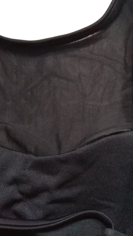 Bought 3 xxl pieces for my mother (her sizes are: 160cm tall, 86kg, bust 109cm, under bust 92cm, waist 100cm, hips 117cm) and they fit quite well. This one the material tends to turn slightly where the seam near the net material is, slightly noticeable but my mom doesn’t mind