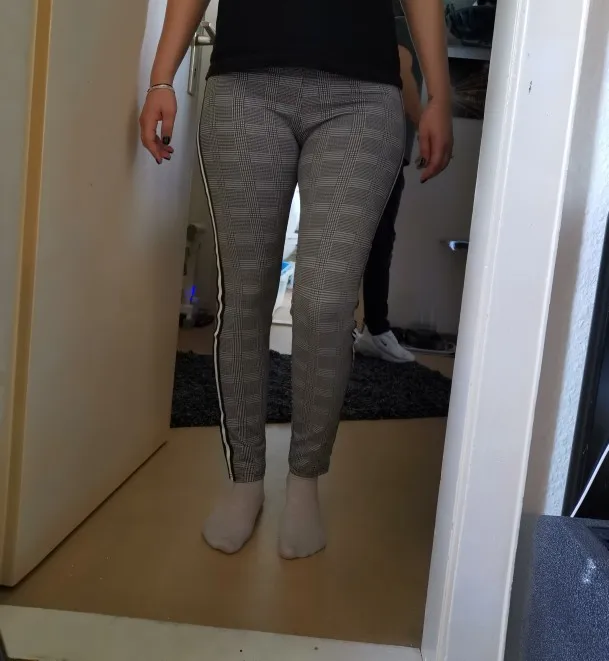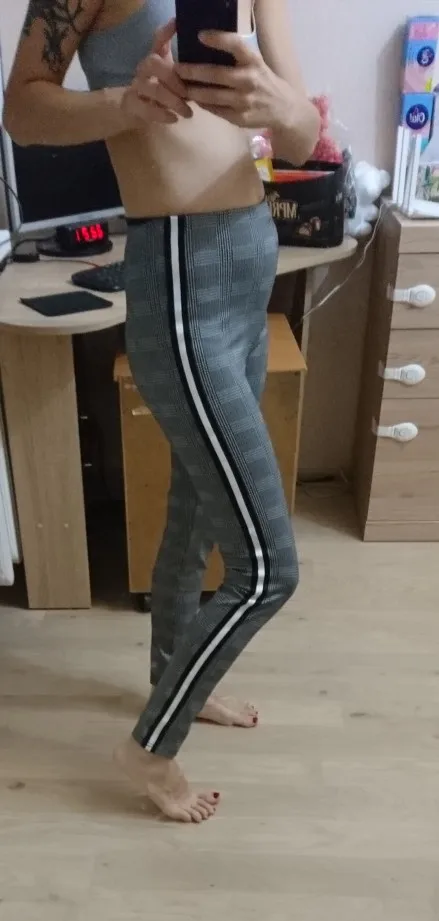 В РБ пришли быстро за 23 дня, отслеживались. Цена со скидкой была 9,40$ и бесплатная доставка. Сейчас очень дорого стало. Размер S даже свободный, но я сейчас пузатая, поэтому нормально. только убрала верх немного, чтобы на живот не давили. Ткань плотная, но не зима точно, вечером в +19 в них ходила не жарко, скользкие, от лавочки остаются затяжки, хорошо, что из-за расцветки не заметно. Из-за скользоты ерзают на попе, нужно подтягивать. Смотрятся как брюки, но по ткани больше леггинсы. Я рост 168см, вес сейчас 52кг, бёдра 90см, талии нет)).