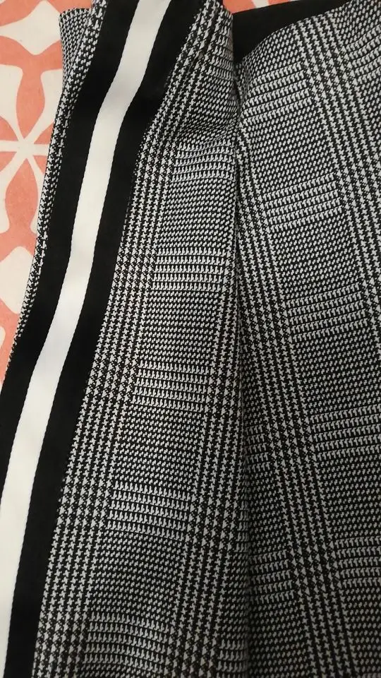 Pants are cool! The fabric is stretch, very well stretches, pleasant to the touch. Stitched neatly, all seams are even, threads do not stick out. I recommend to buy!