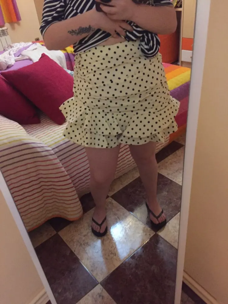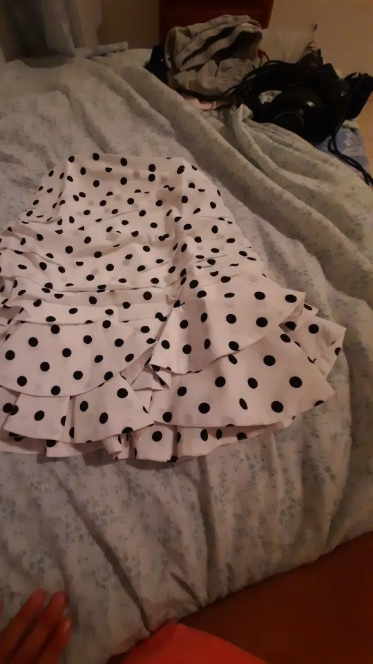 The skirt is cool. On my hips 90 cm, the size is perfect. The fabric is good, but the lining is not very.