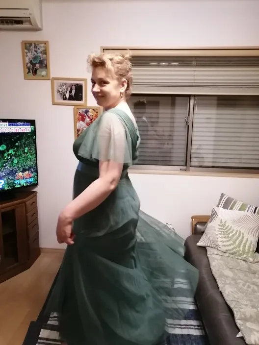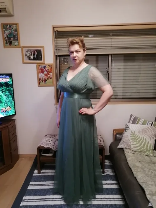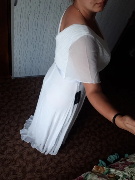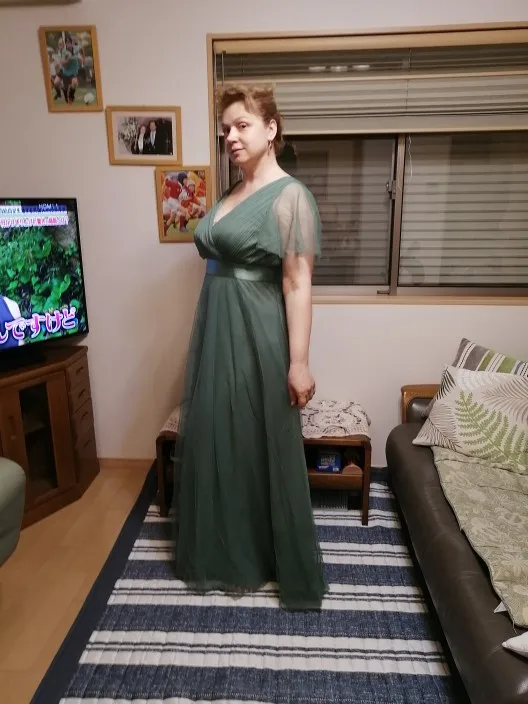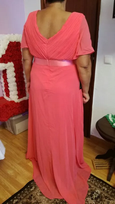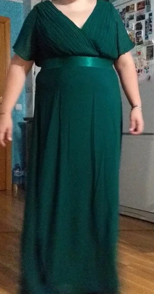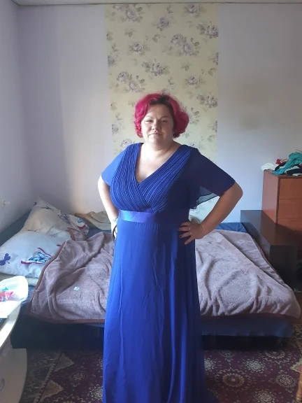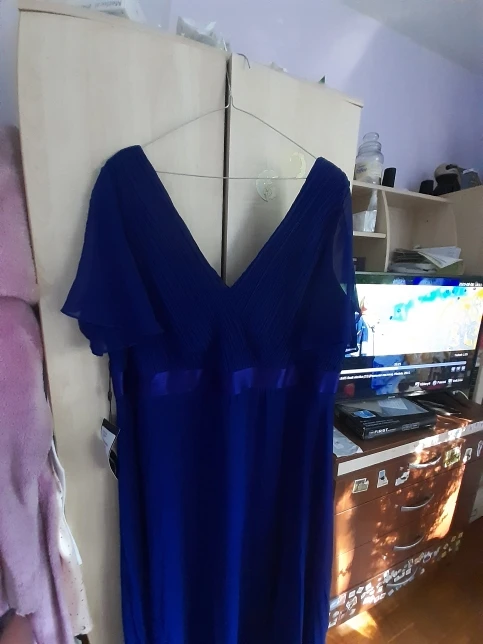 The dress is beautiful, the color is saturated blue, took 56 size, on my chest 120 cm came well, and at the waist it is necessary to sew a couple of cm, it came a couple of days earlier, I'm very happy, T. K. I ordered for the wedding, thank you