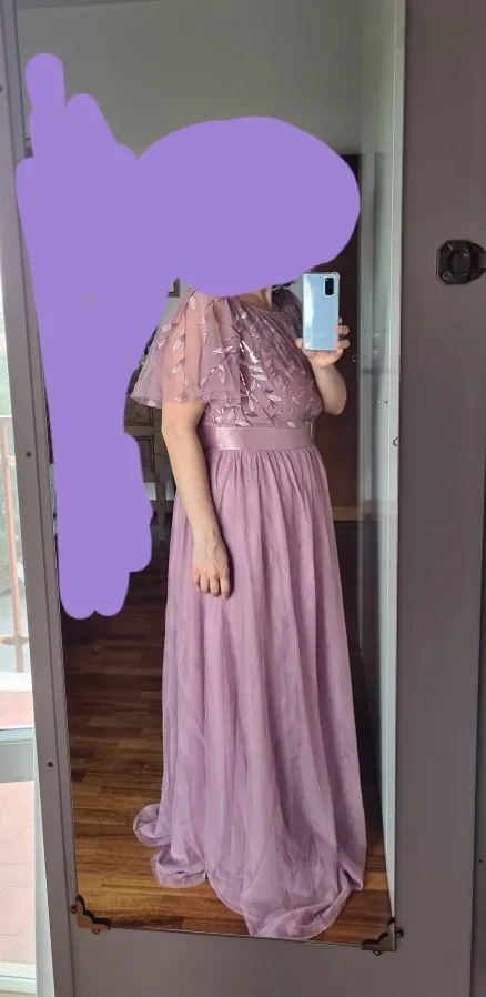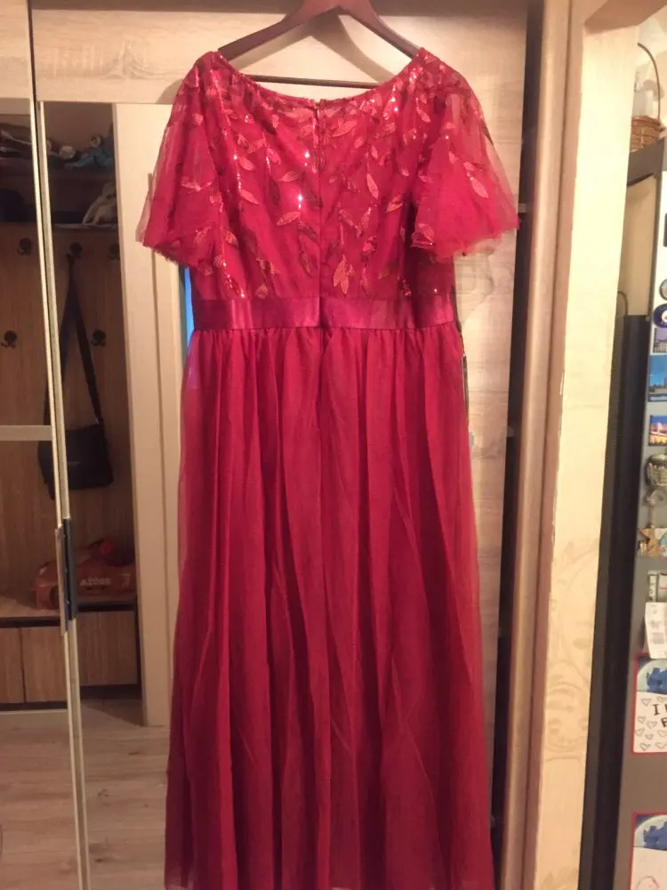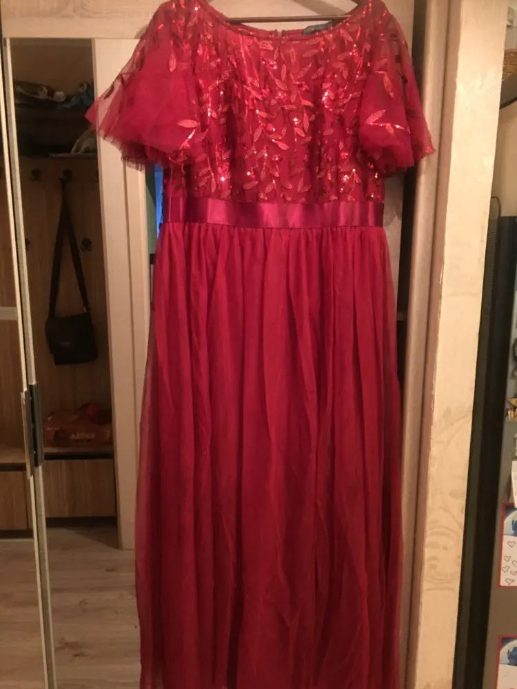 Платье пришло быстро. До Краснодара за 2 недели. Красивое. Яркий цвет, очень нравится. Взяла чуть больше размер, можно было на один меньше. По длине вероятно надо подрезать или высокий каблук на рост 165.