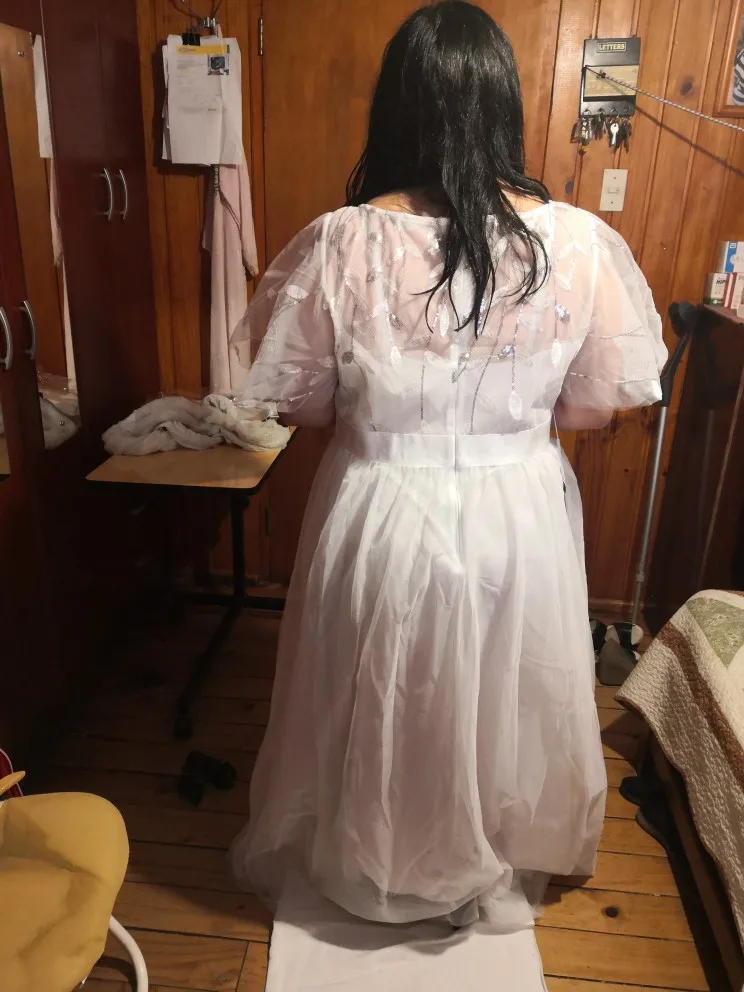 Fascinada con el vestido, la talla es perfecta la tome un poquito mas grande por las dudas, le entrare un poco, pero todo igual a la descripción, la tela muy suave y de buena calidad, vendedor atento a todas las dudas. 100% recomendable. Gracias