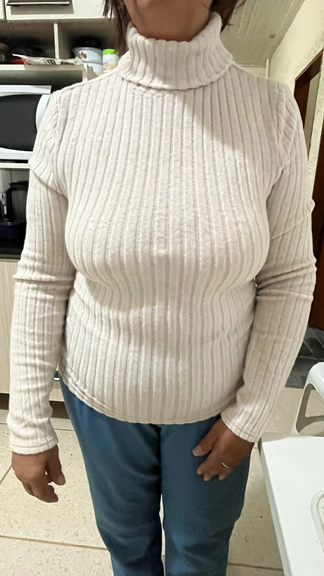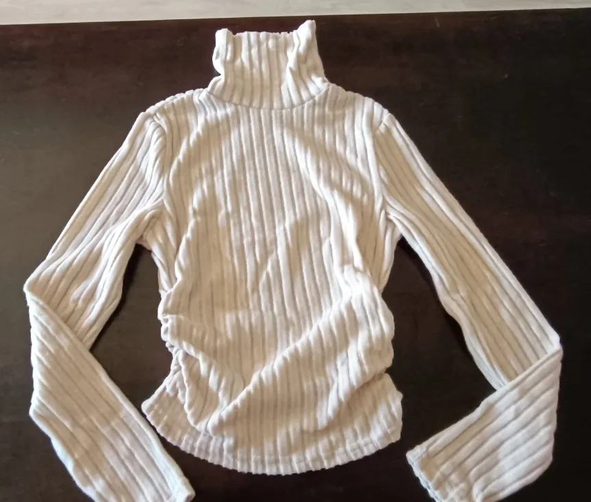 The sweater is great! Very pleasant to the touch. The color is beautiful. Everything is as described. High collar. I really liked it. I recommend.
