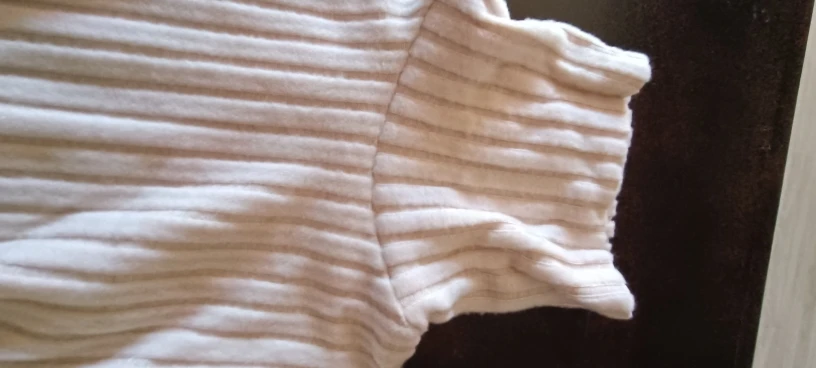 Interesting T-shirt, pleasant to the body. The side seam at the bottom is slightly gathered with elastic. For a height of 168 cm, it's a bit short, but not critical.