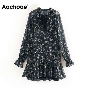 Vintage Dress Ruffle Bow Tie Mini Floral Print