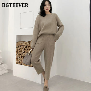 Casual Sweater Tracksuit O-neck Pullovers And High Waist Pants