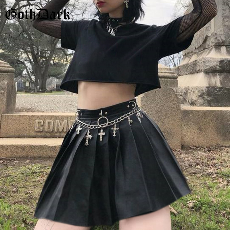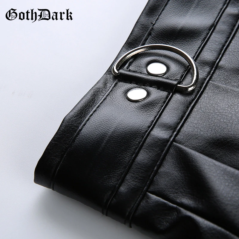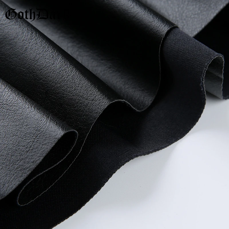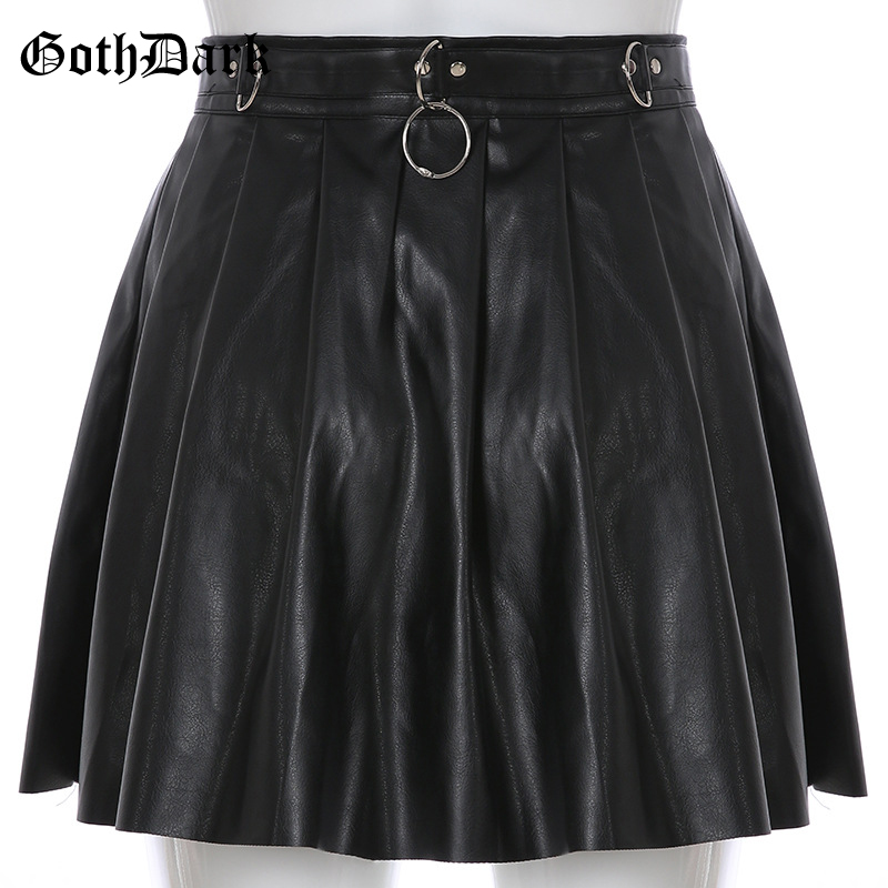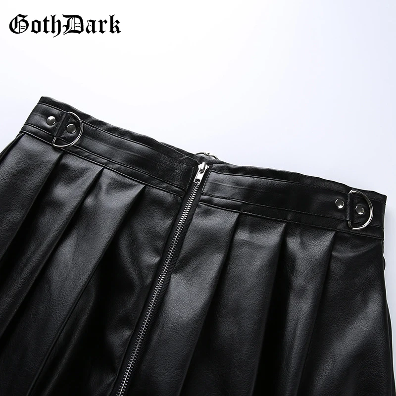 - PU Skirt Black Streetwear Zipper Rivet Pleated