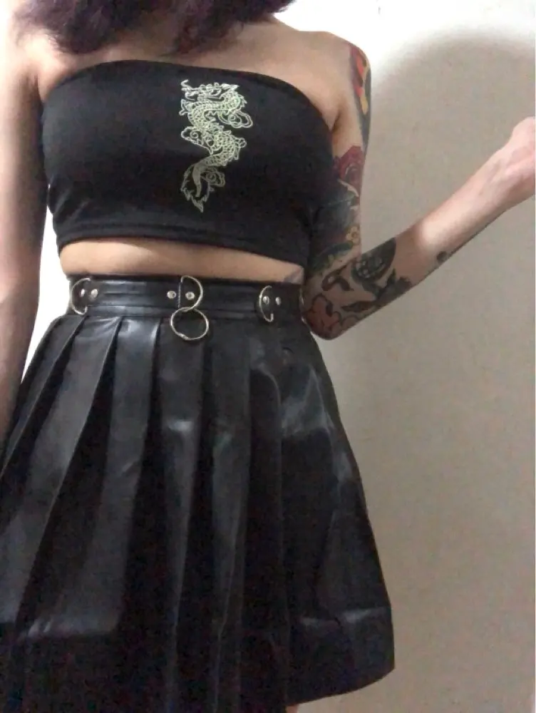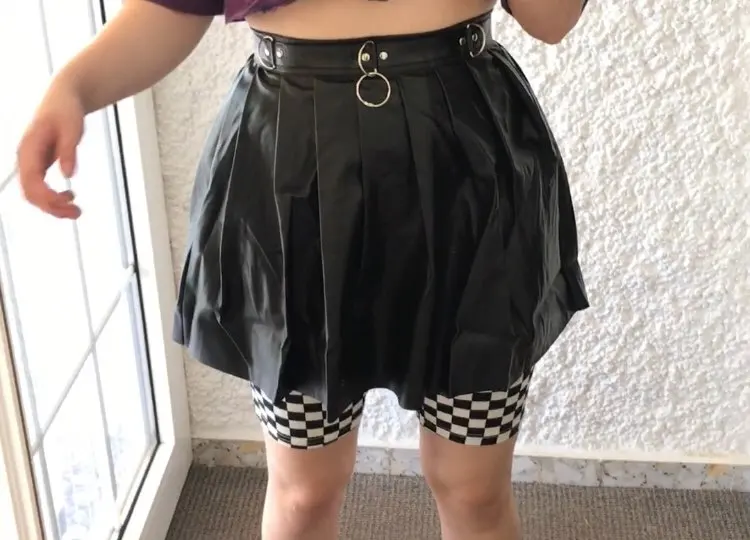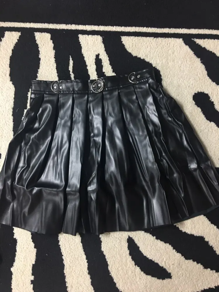 - PU Skirt Black Streetwear Zipper Rivet Pleated