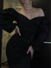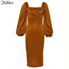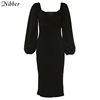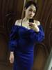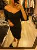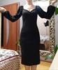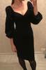 Pure V Neck Off Shoulder Bodycon Dress Women Autumn Winter Club Party Night Red Black Elegant Midi Dress L0055