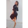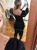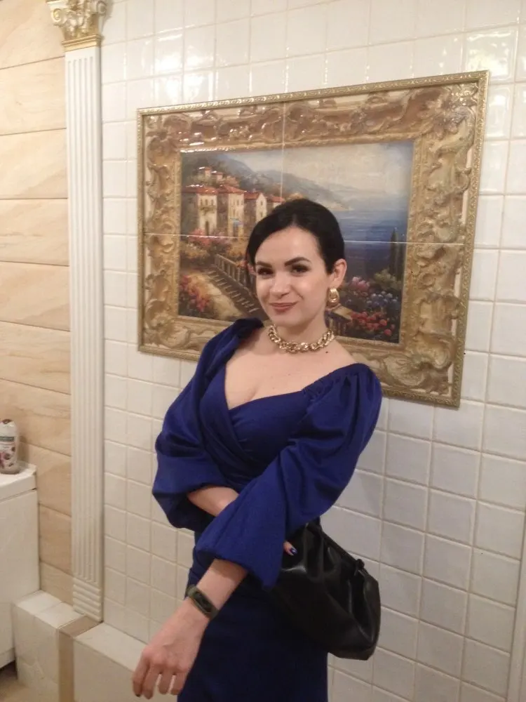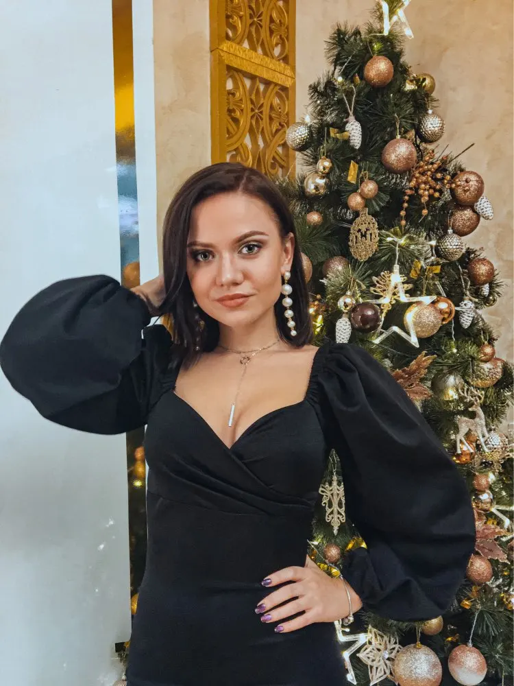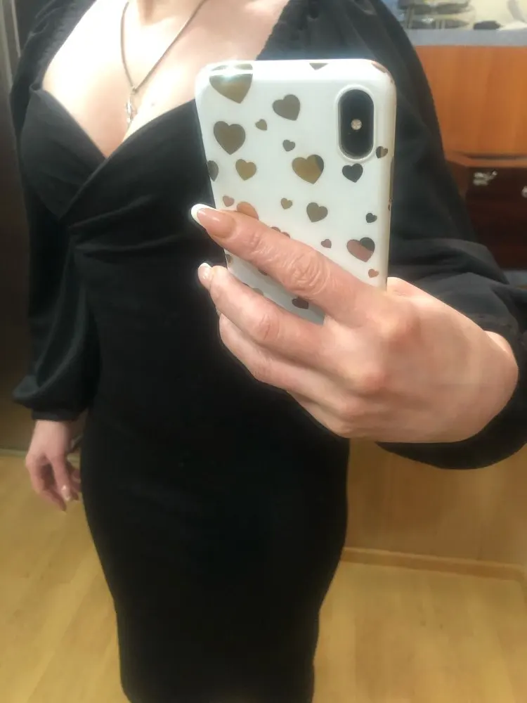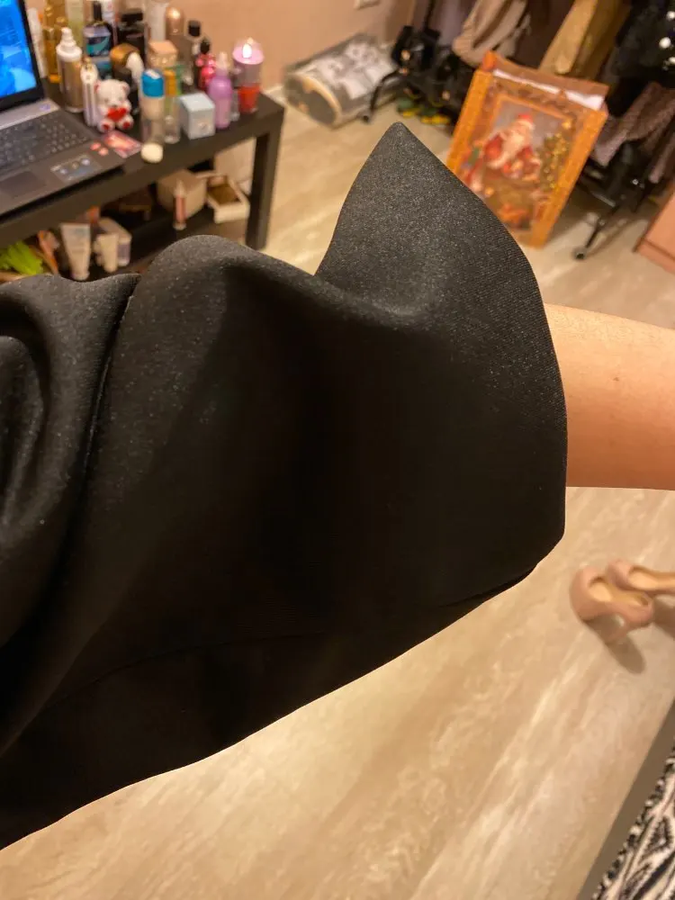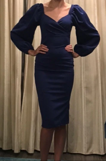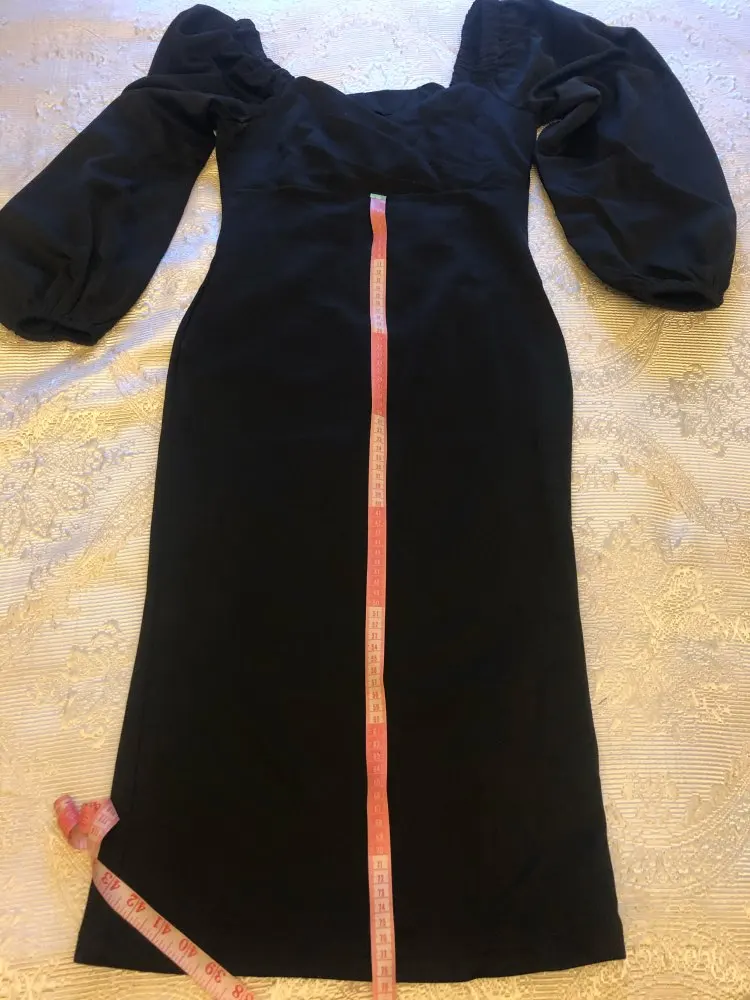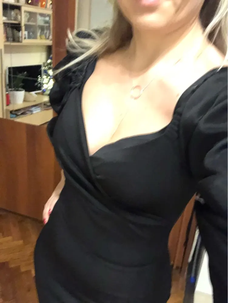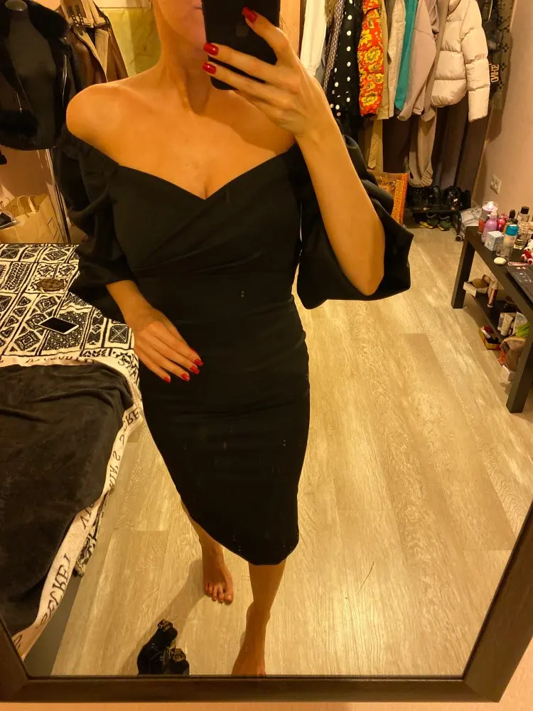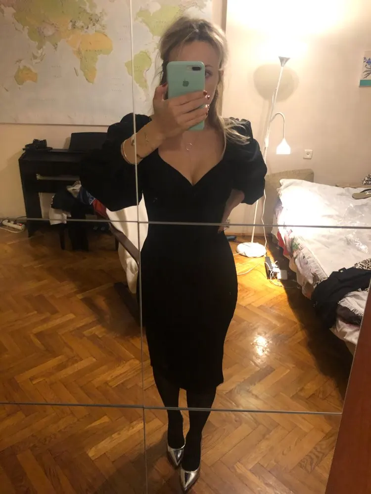 Evening dress, fitted silhouette, with a flirty neckline on the chest, long sleeves with lanterns that hold on the shoulders thanks to rubber bands, behind the dress is a regular square neckline. At the bottom of the skirt behind the slot. Material: Polyester, spandex, not thin, nice to wear. Sewing perfect, no strings and curves seams. On the dress there was a store tag, on the wrong side there is information about the composition of the fabric and the size. Waited for the parcel 20 days, the track was tracked all the way, the dress was packed in the postal package and zip package. The dress fascinated, thanks to the store.