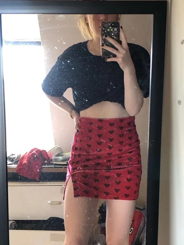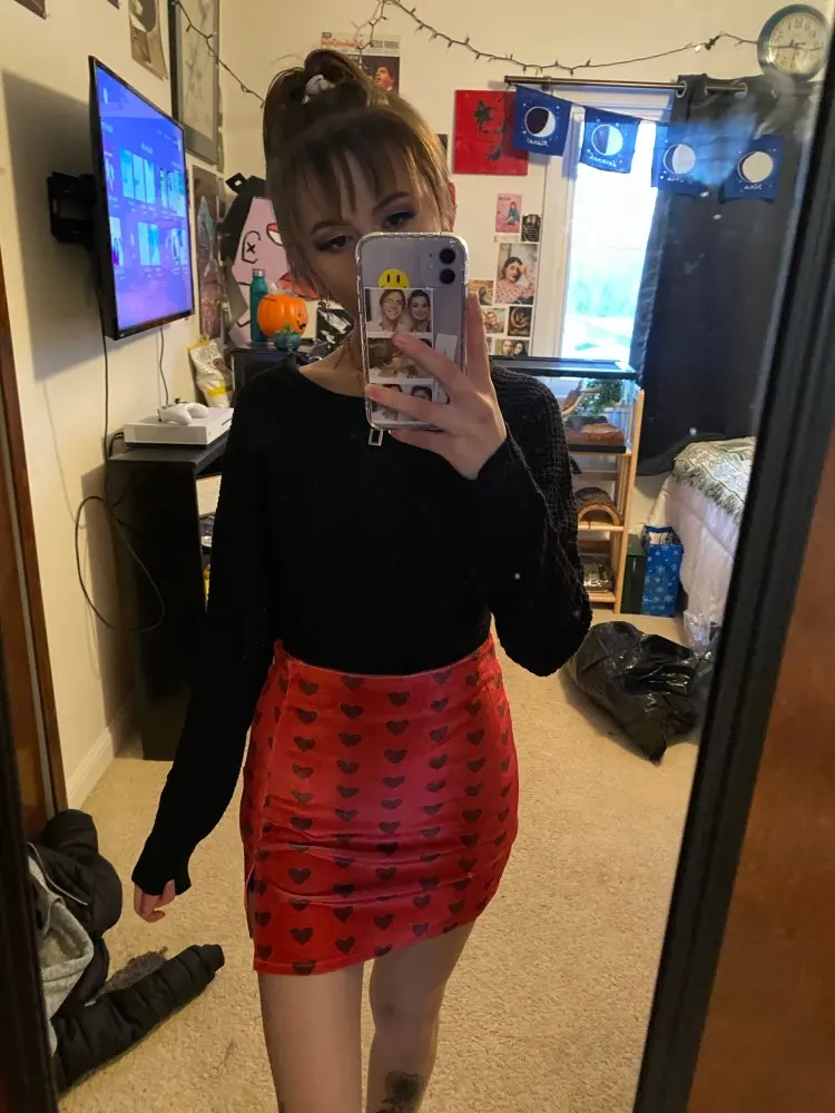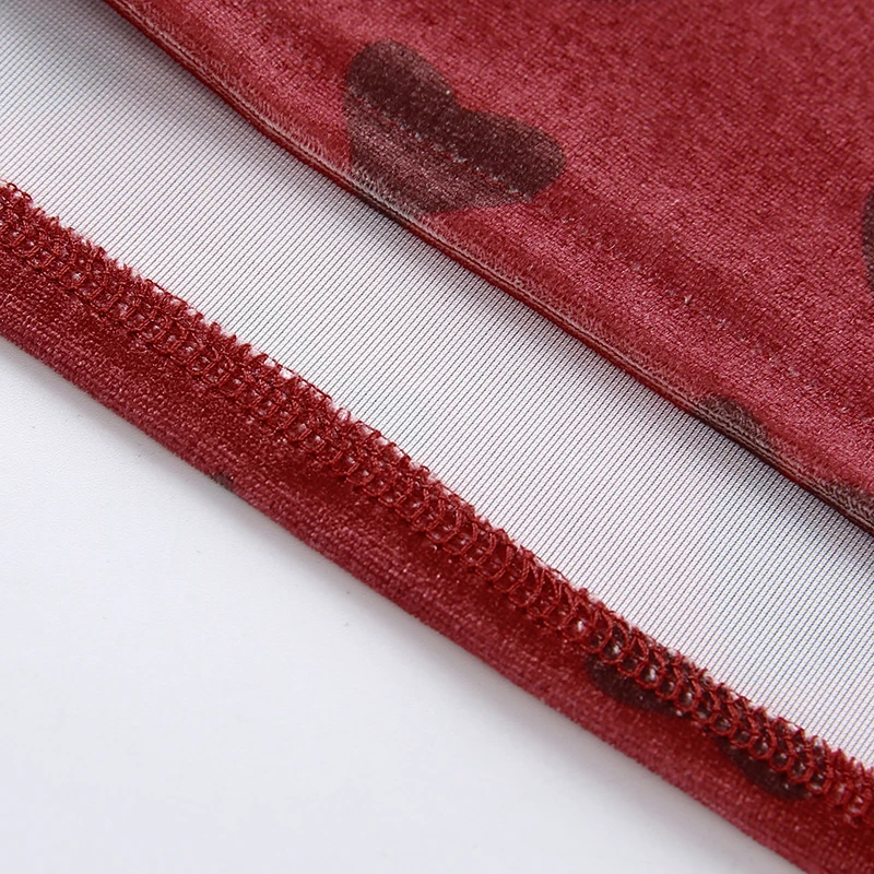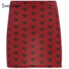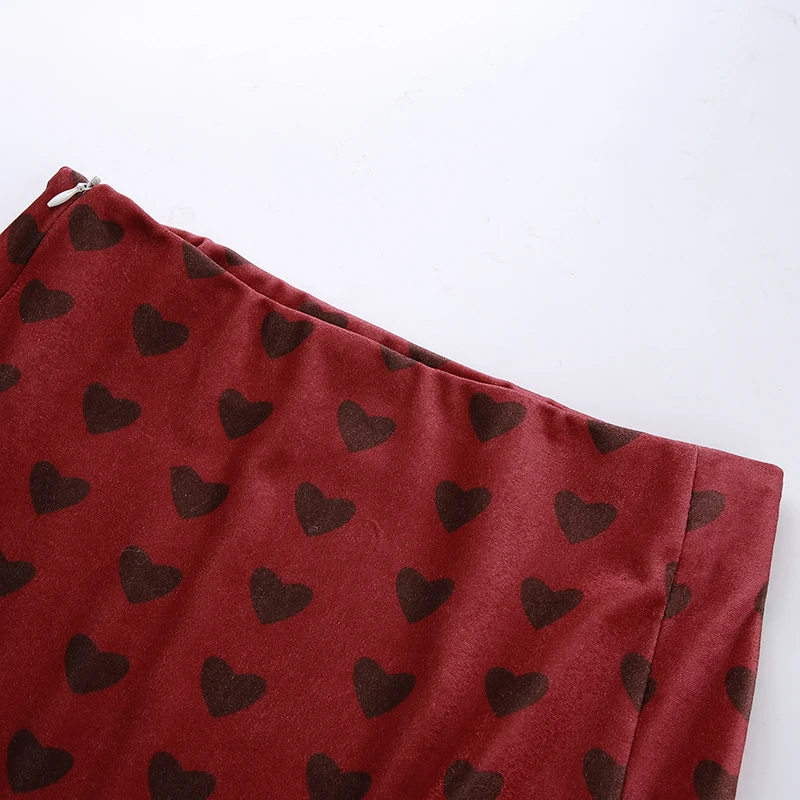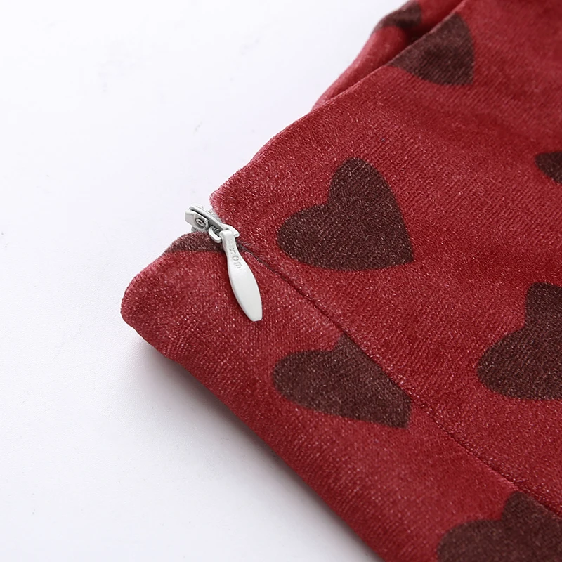 Red Velvet High Waist Skirt Streetwear Heart Print Zipper Cute Mini Skirts L0193