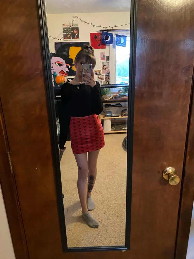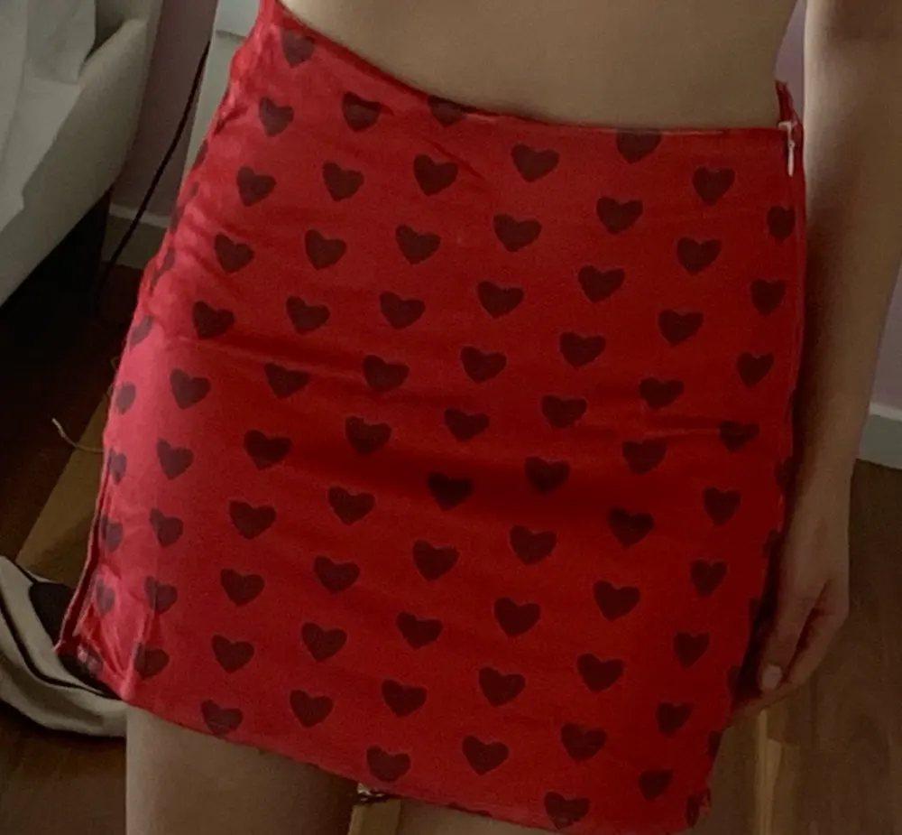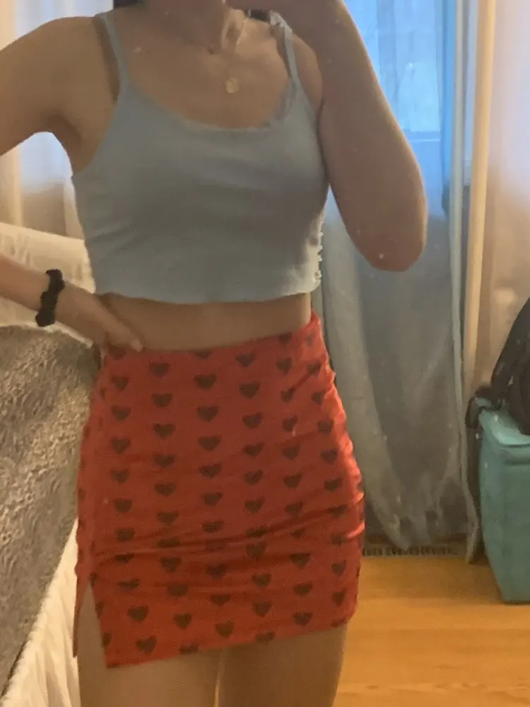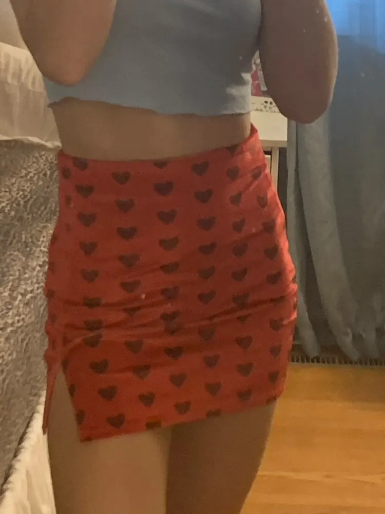 Red Velvet High Waist Skirt Streetwear Heart Print Zipper Cute Mini Skirts L0193