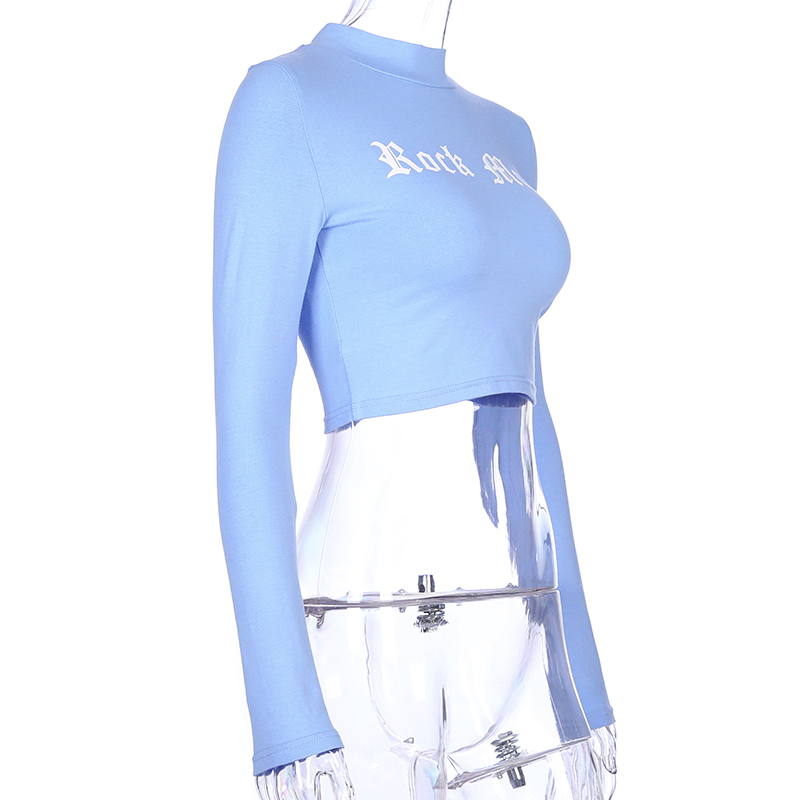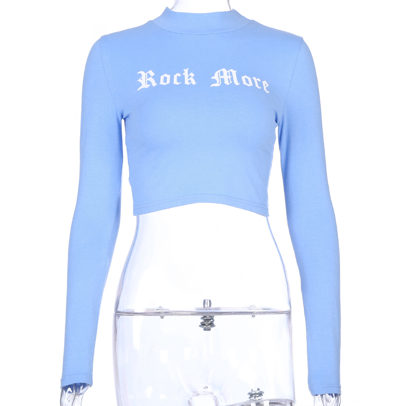 Rock More Crop Top Long Sleeve Turtleneck Printed L0192