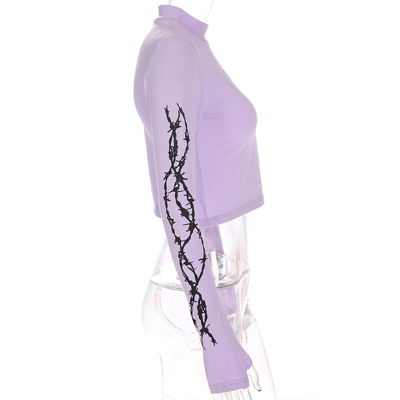 Rockmore Crop Top Long Sleeve Turtleneck T Shirt L0114