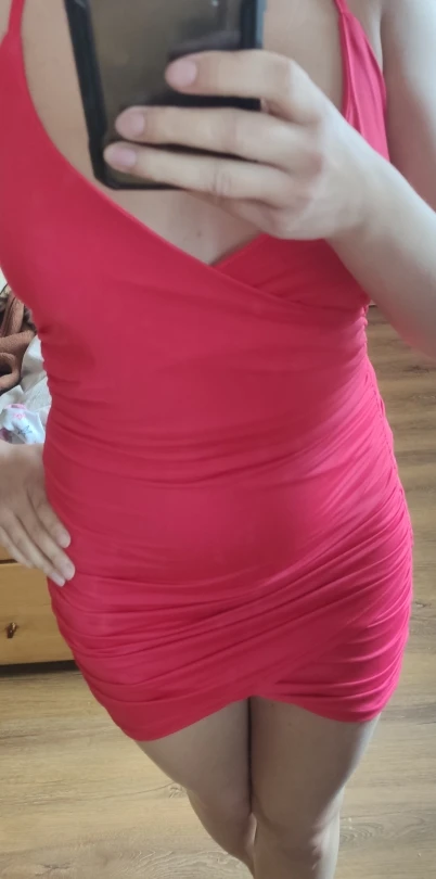Платье пришло быстро. Немного тянется. На грудь 114 и бедра 113 село в облипочку. Можно носить под пиджак или кофту, если по скромнее вид хочется. Спасибо большое