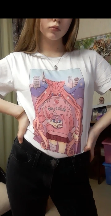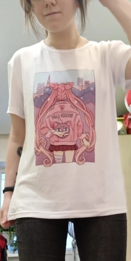 T-shirt comfortable feel, sizing lies, fabric soft and pretty thin. Cut straight, scallop. Imprint OK. Uszycie also OK. Wzięłam bi size M (I have 165cm and 65 kg) and T-shirt fit. Order złożyłam day 02.09, pack dotarła 27.09 (less than 4 weeks). Tee shirt zamówiłam due to sentiment for fairy oglądanej in childhood. Seller spełnił my expectations, with purchase I am glad. Dziekuję and best regards