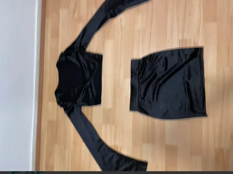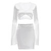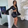 Satin Flare Long Sleeve Two Piece Matching Set Women Crop Top High Waist Mini Skirt L0167