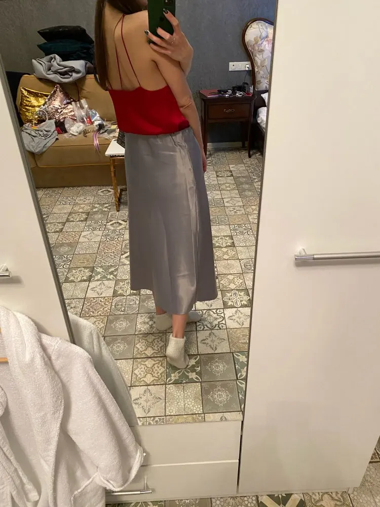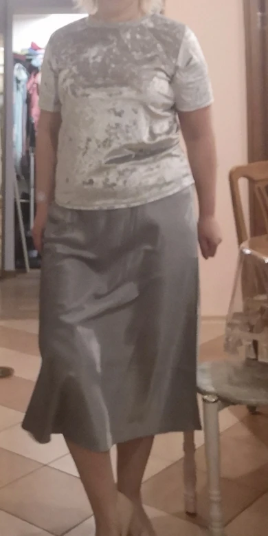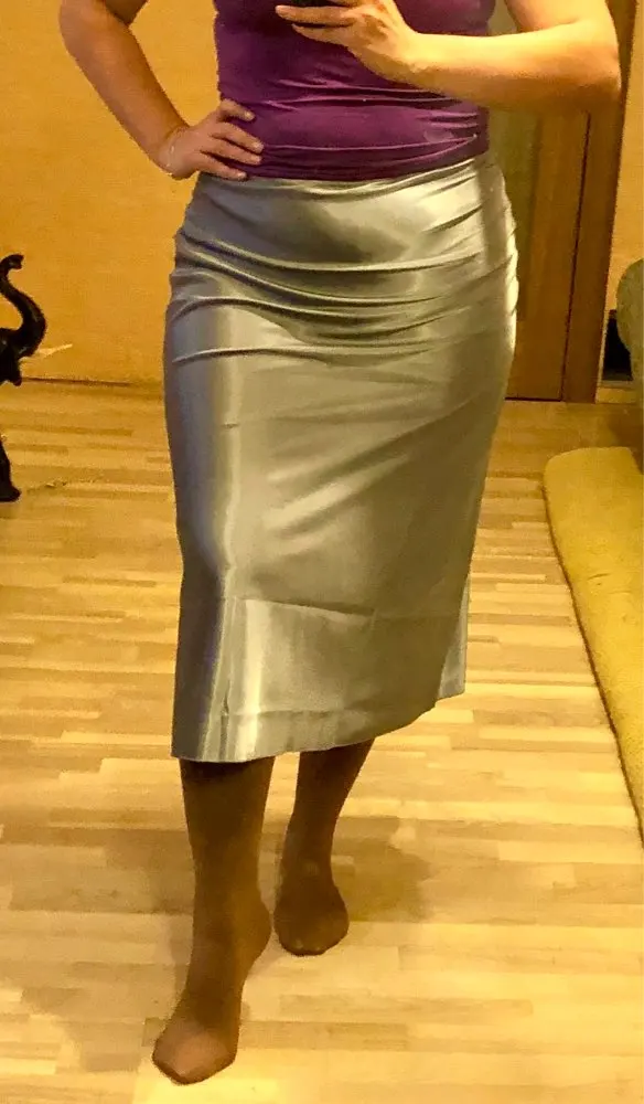 The skirt is very beautiful. Steel color. Well sits. Smooth seams. The size of my parameters is about 108, from 89 villages is fine. I ordered it on New Year's holidays. 01.02 received