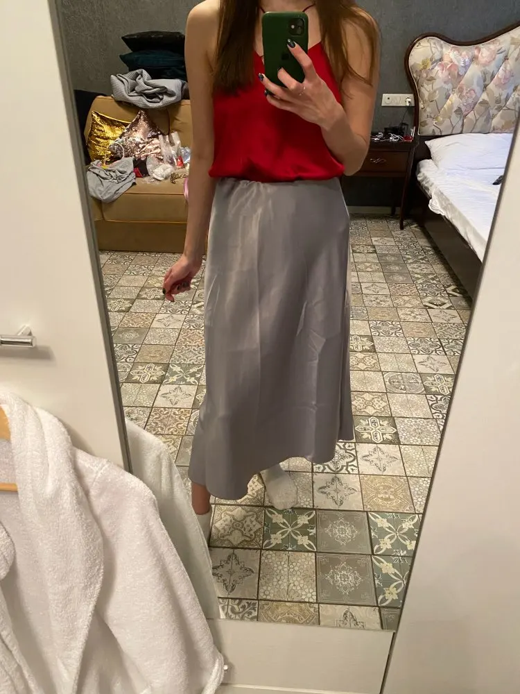 I liked the skirt. The material is dense. In general, a cool skirt)) and the main thing is all in size.