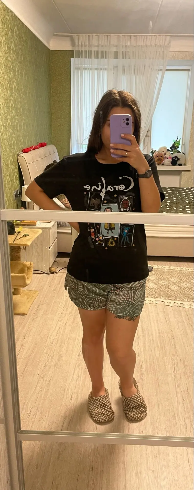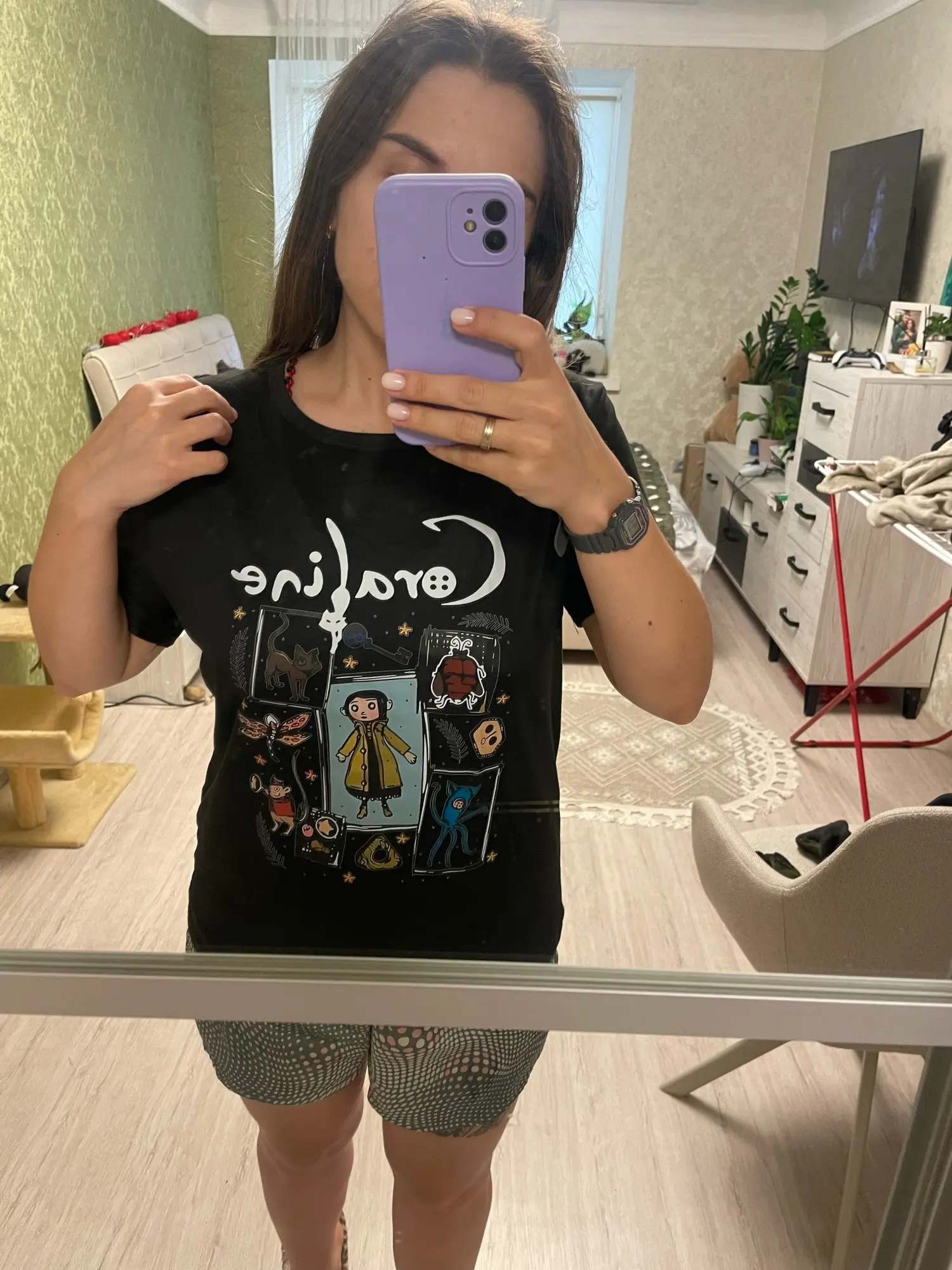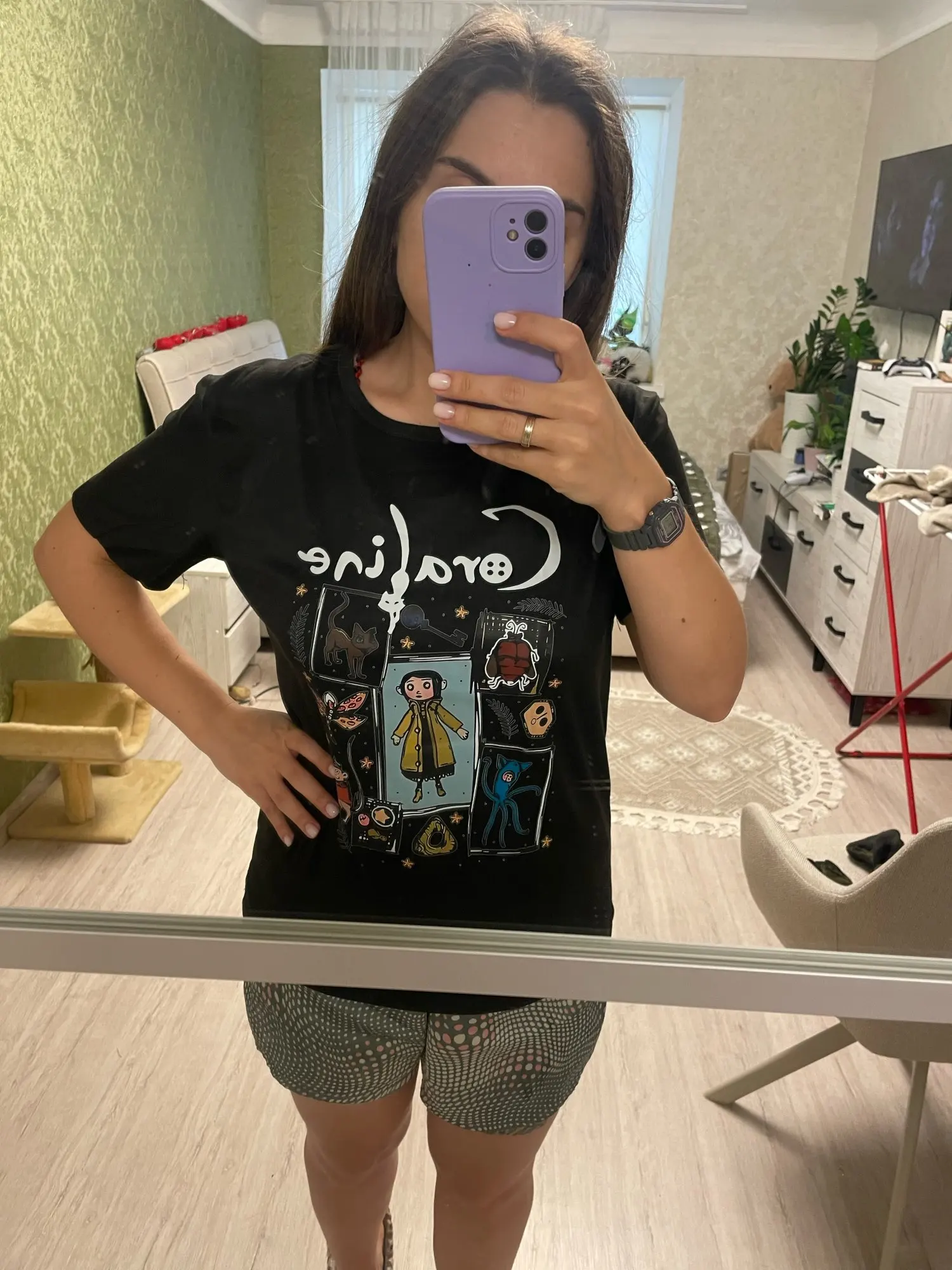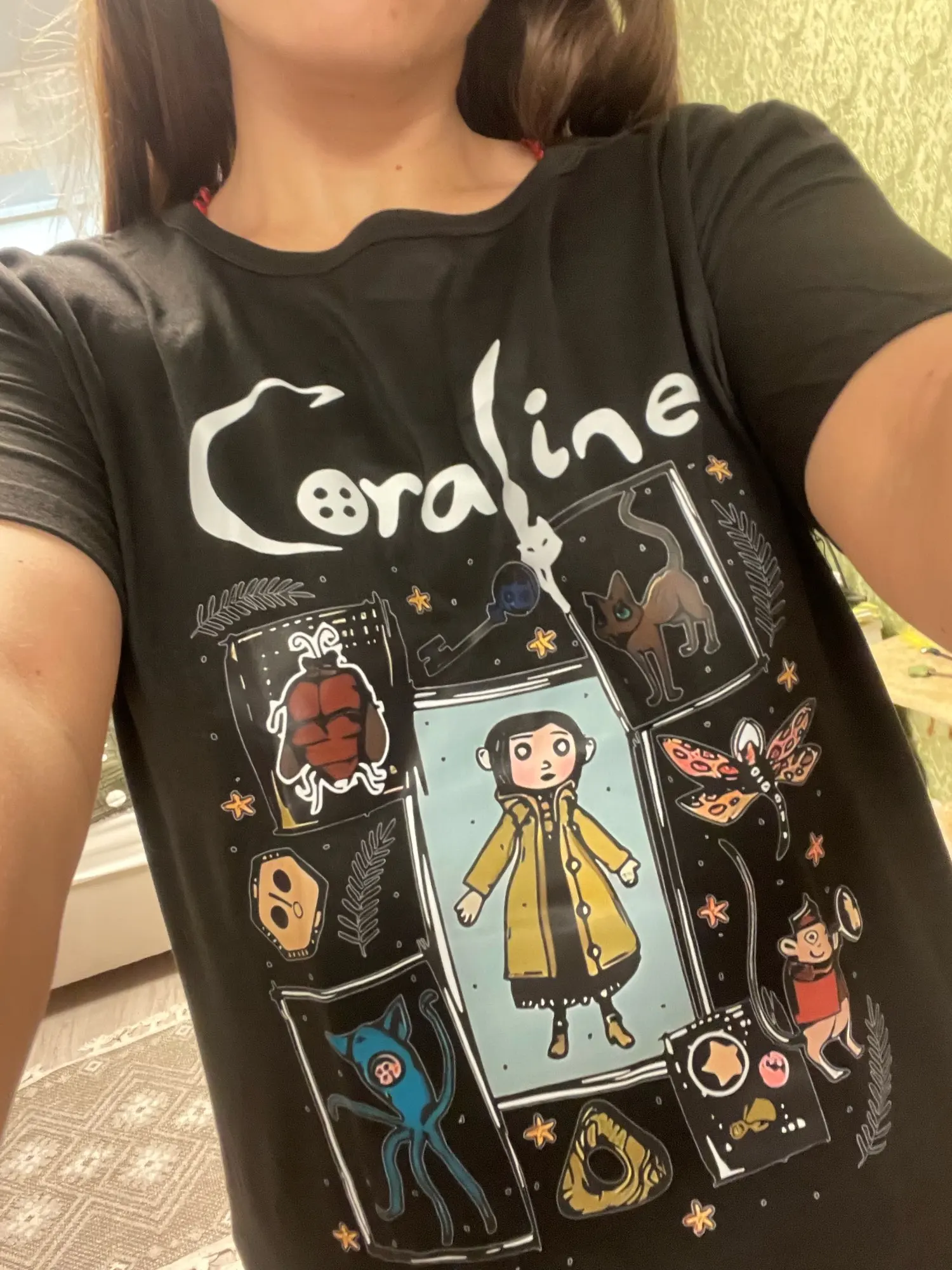 The T-shirt is cool, with a cool print. The quality is quite good, it feels pleasant to the body. I wanted it not to be tight, so for a height of 161 and weight of 48 kg, I took size L (in real life I wear XXS-S). It fits on the body just as I wanted. There are no defects. Fast delivery. Good price. I recommend the product to the seller!!!