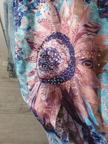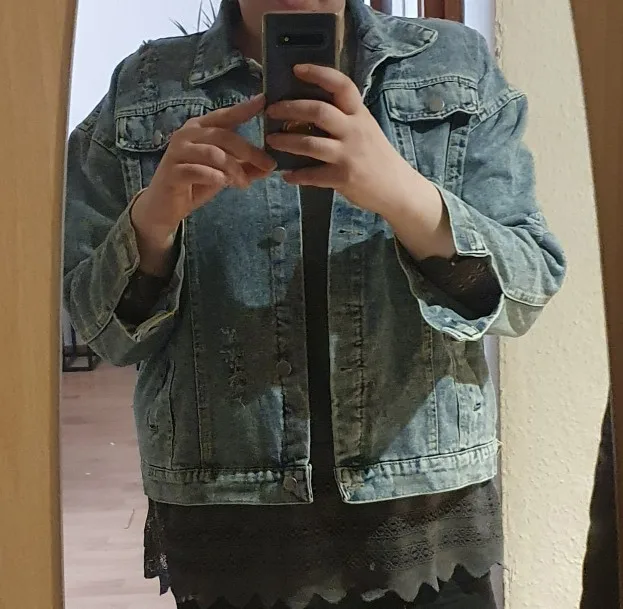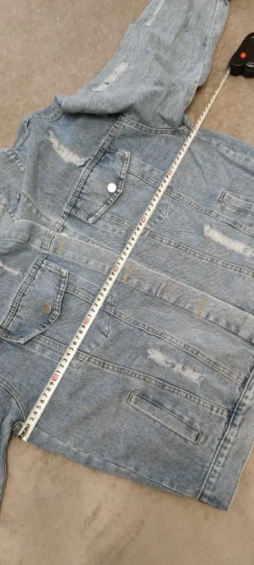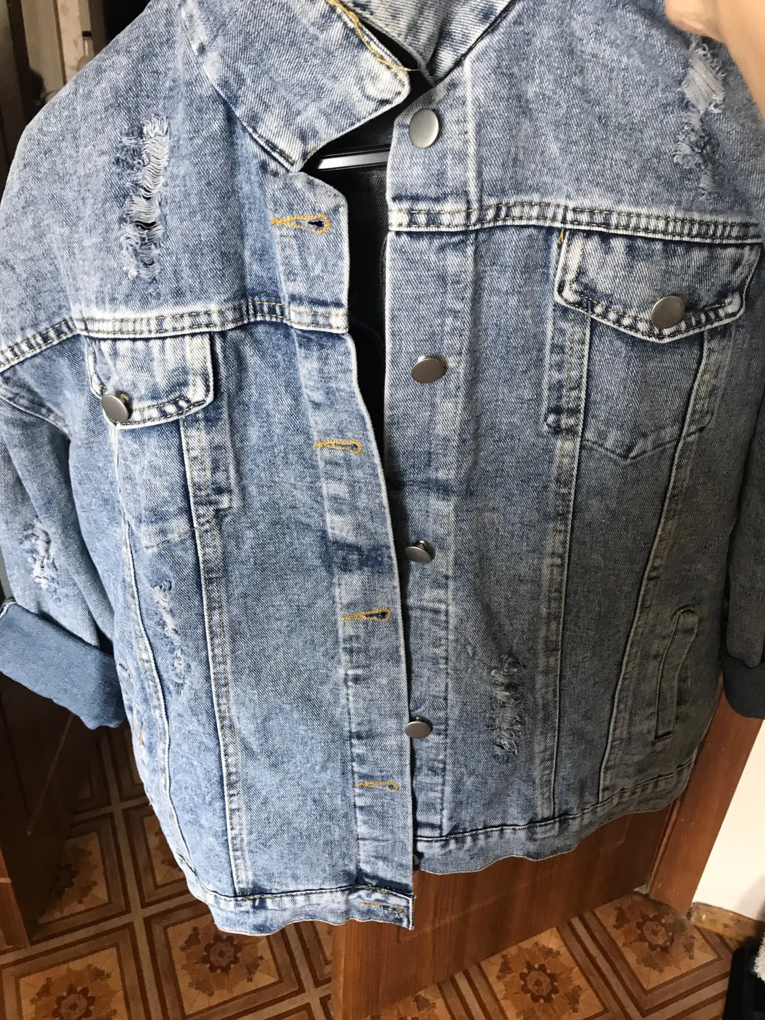 On S size took XL, and did not regret. It turned out a good oversize. Sewn well, only not cut petlichs for buttons there is a smell of chlorine, as usual with jeans. By measurements, the size XL turned out to be 122 cm in volume, keep in mind those who take the size. Sleeve 3/4 Sent the store for a very long time, more than a week.