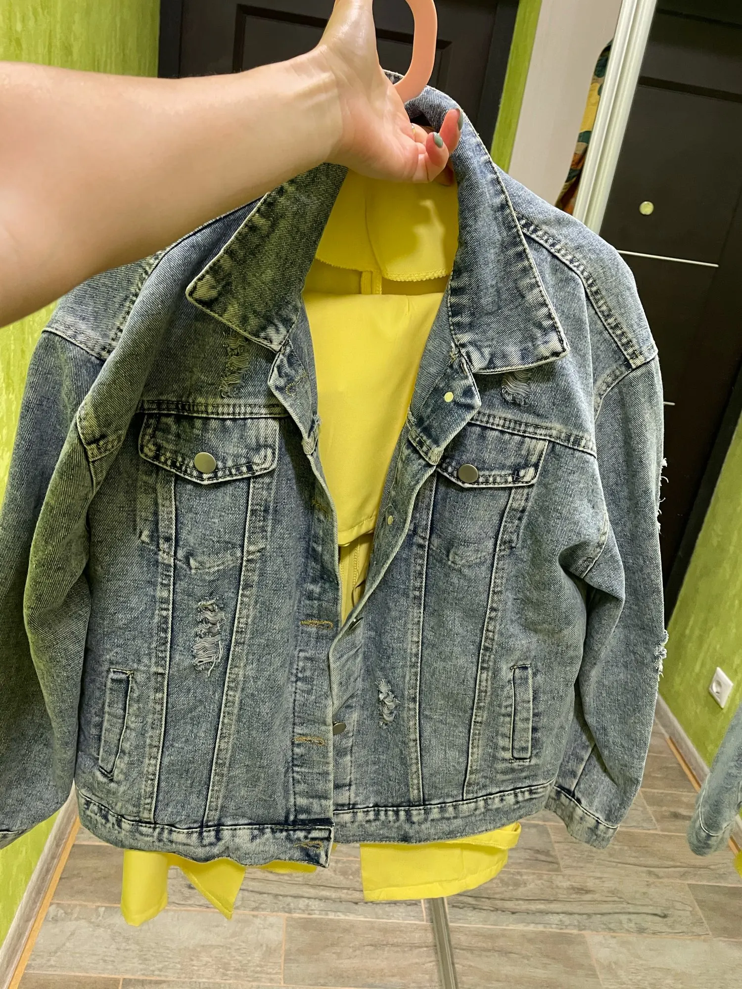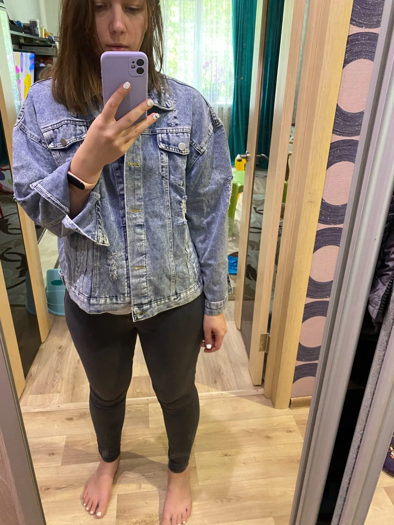 Куртка супер! Джинс не жесткий легкий на лето самое то . Размер м большемерит , если кто любит в притык надо меньше брать . Мне нравится свободно - оверсайз . Доставка быстрая