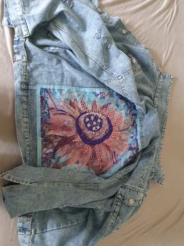 Sequin Floral Embroidery Denim Jacket With Boho Style