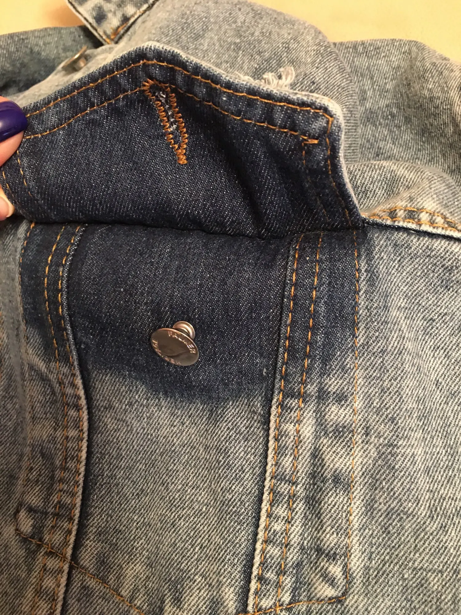 Shipment mega fast. Jacket has no bad smell, it is soft jeans. like the picture no upper pocket. Hole punch for buttons are done. Kutrka is convenient and comfortable feel. Size M is ideal for people for 160 cm tall (sleeve perfect) bust 108 (is stock 3 cm ). Recommend