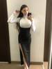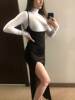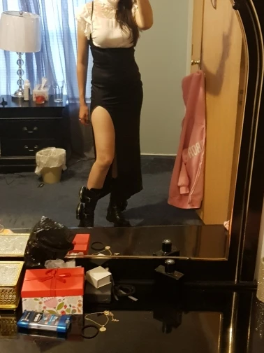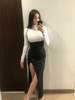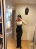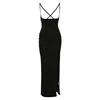 Sexy Black High Waisted A Line Suspender High Split Maxi Skirt