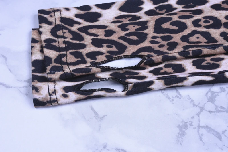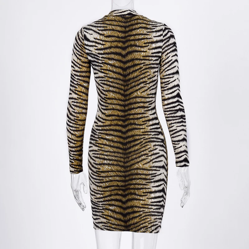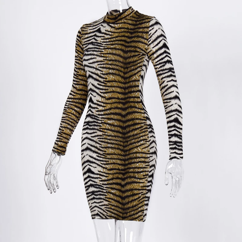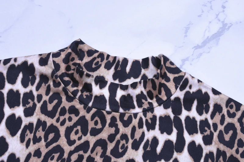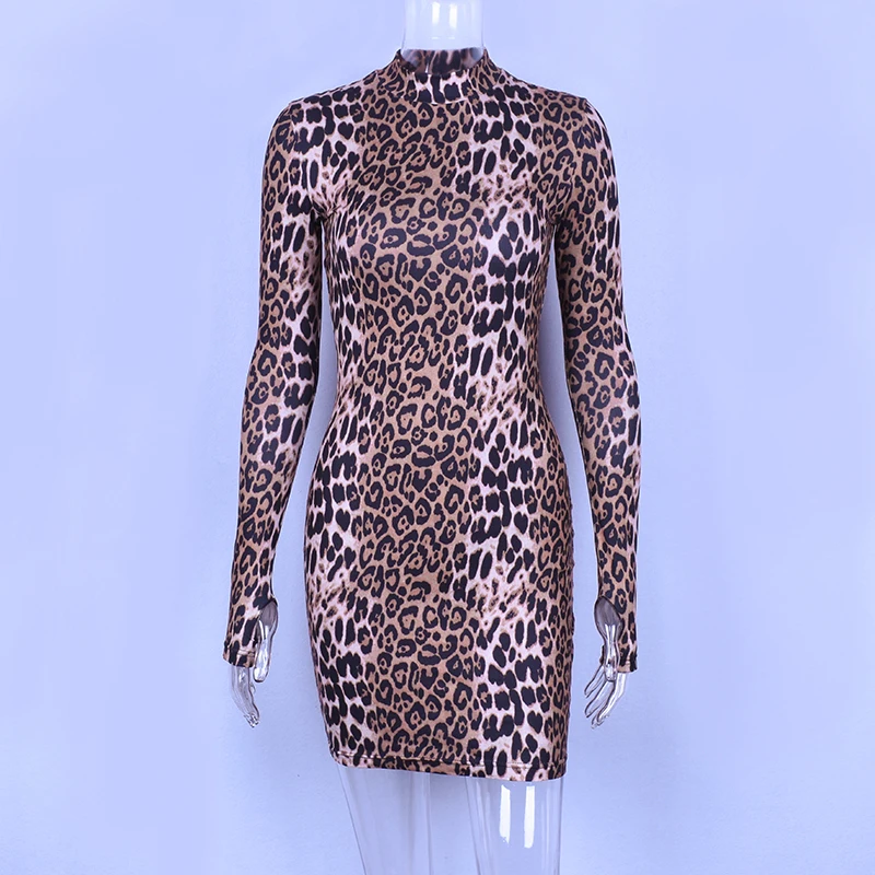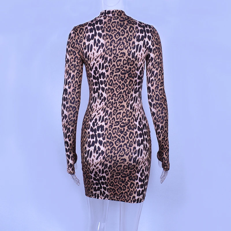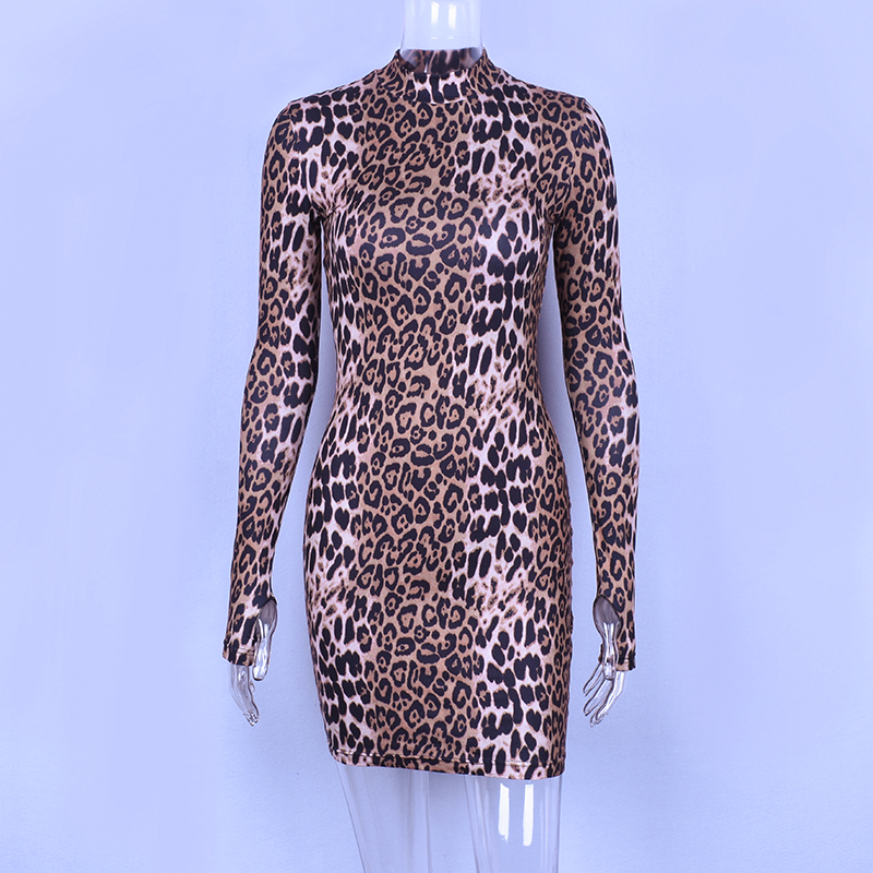 Bodycon Mini Dress Long Sleeve High Neck Leopard Print L0231