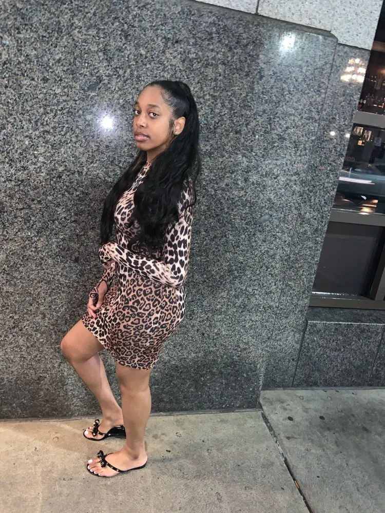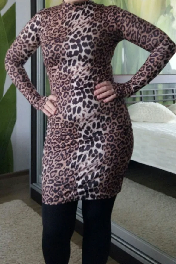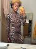 Bodycon Mini Dress Long Sleeve High Neck Leopard Print L0231