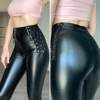Sexy Fleece High Waist Side Lace Up Back Zip Pencil Pants