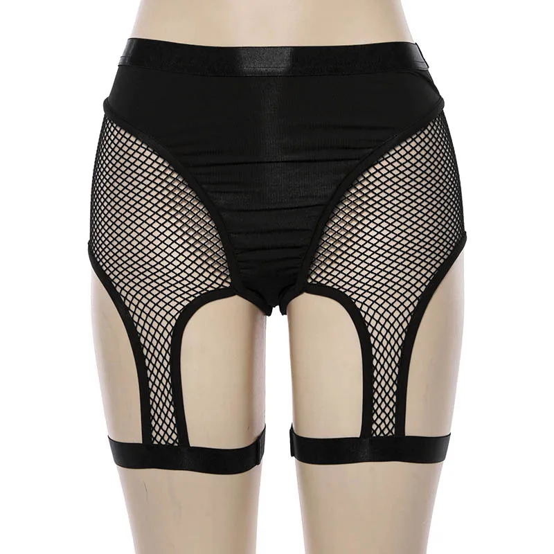 Sexy High Waist Fishnet Mesh Black Summer Rave Festival Short Pants