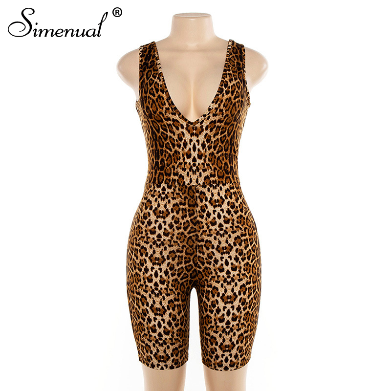 Sexy Leopard Jumpsuits Rompers V Neck OG0683