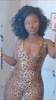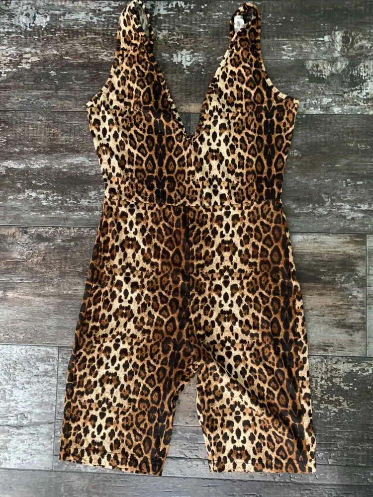 Sexy Leopard Jumpsuits Rompers V Neck OG0683