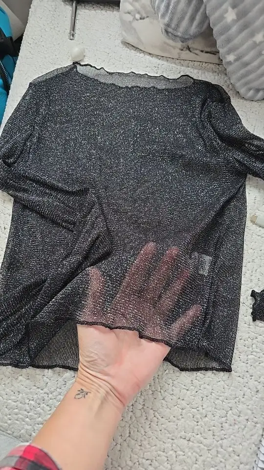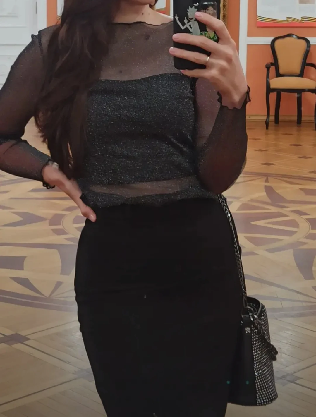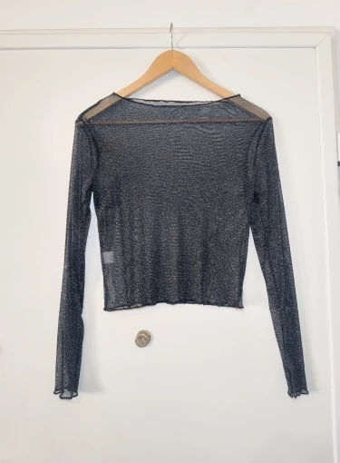 Sexy Mesh Shiny Long Sleeve T-Shirt Women Transparent Black Club Party O-Neck Top OUT1060