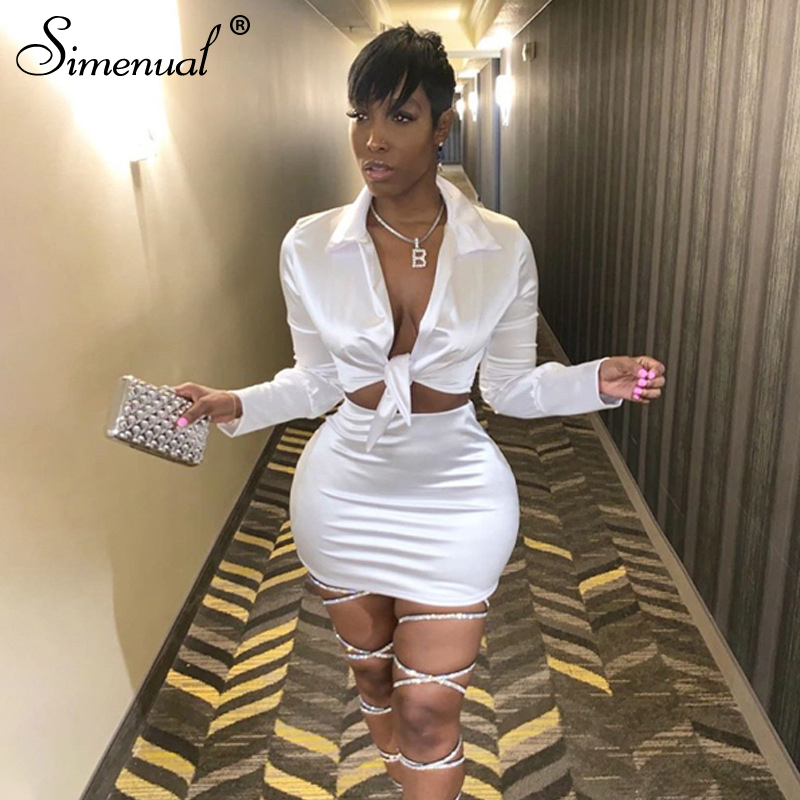 Sexy Satin Bandage Crop Top And Skirt Silk 2 Piece Outfits OG0689