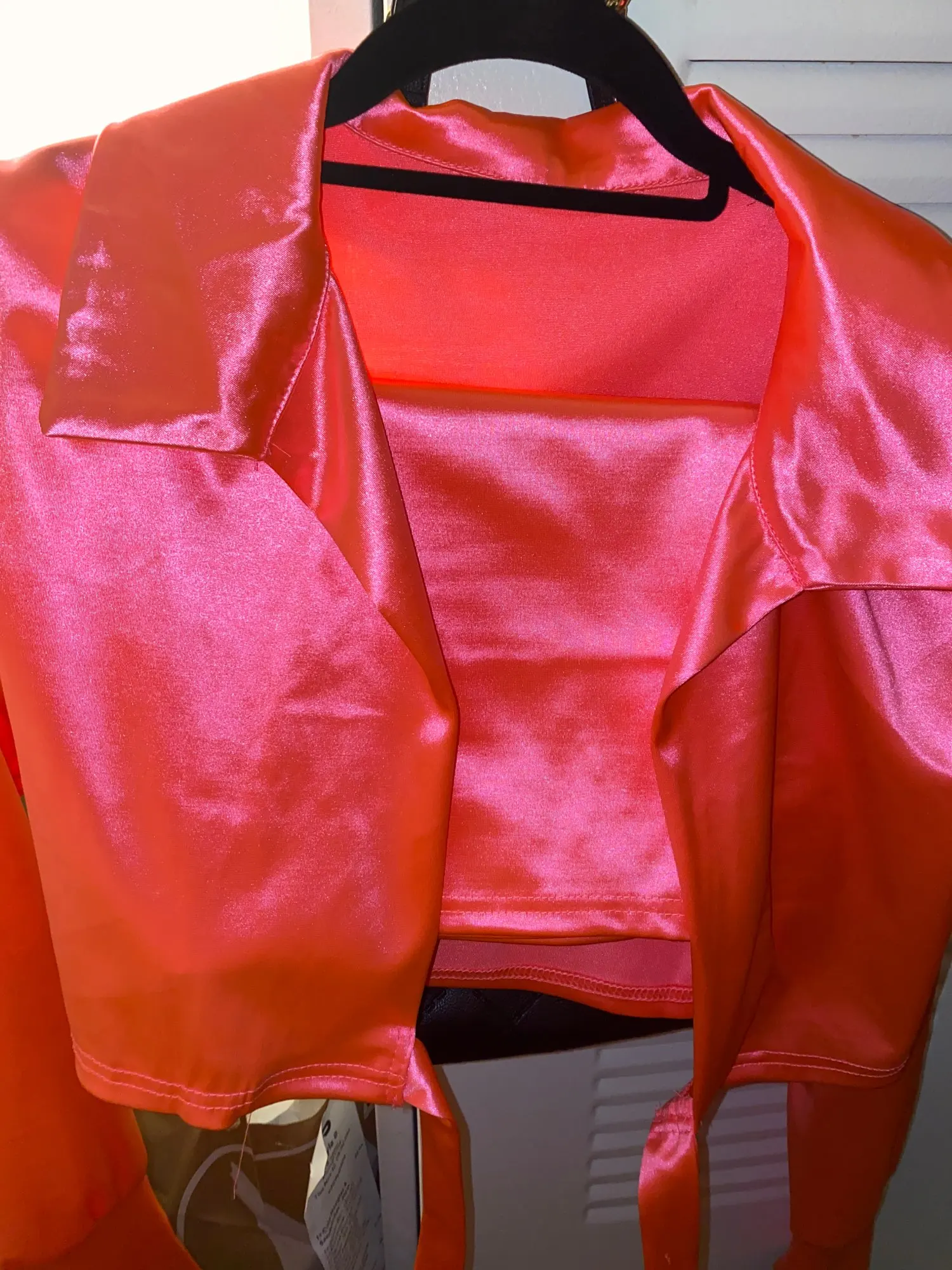 Sexy Satin Bandage Crop Top And Skirt Silk 2 Piece Outfits OG0689