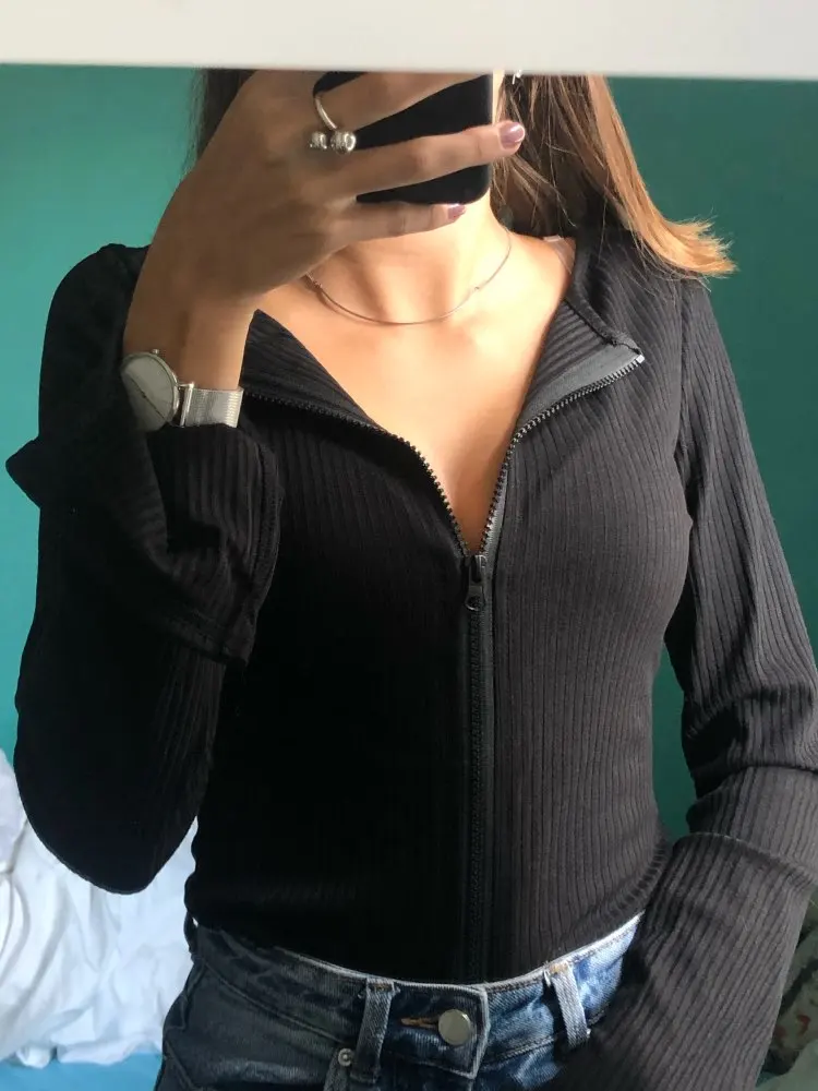 I received this product about 2 weeks after I bought it due to COVID. This shirt is QUALITY. It is not see through at all. Tight but hugs the body, I ordered a medium and this perfect. I love the zippers and flared sleeves. Very happy with product and will be ordering from this store again!