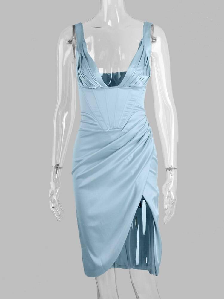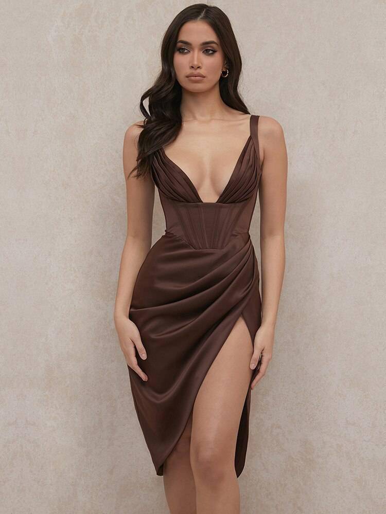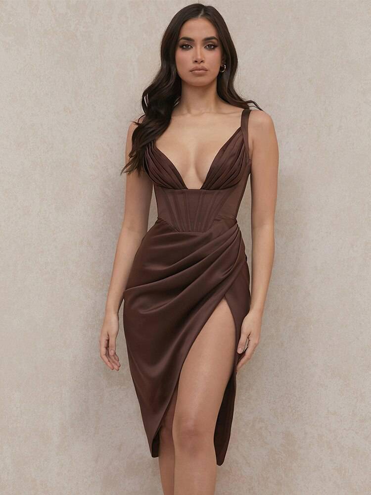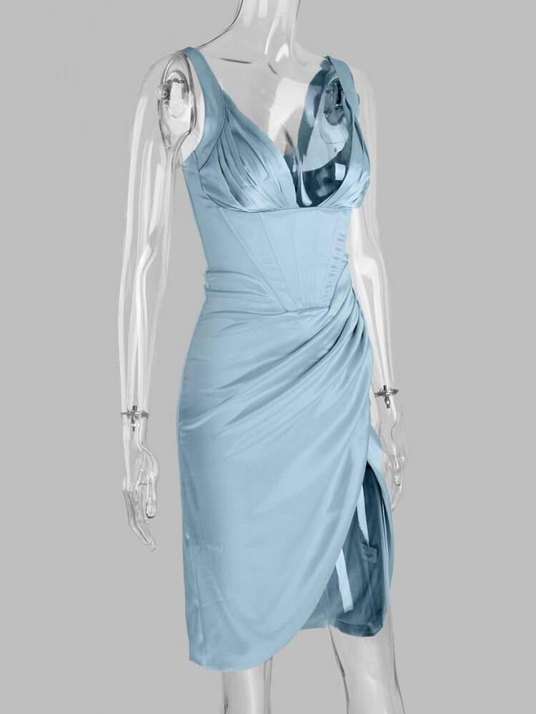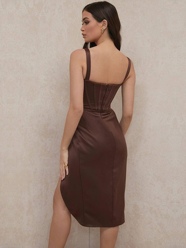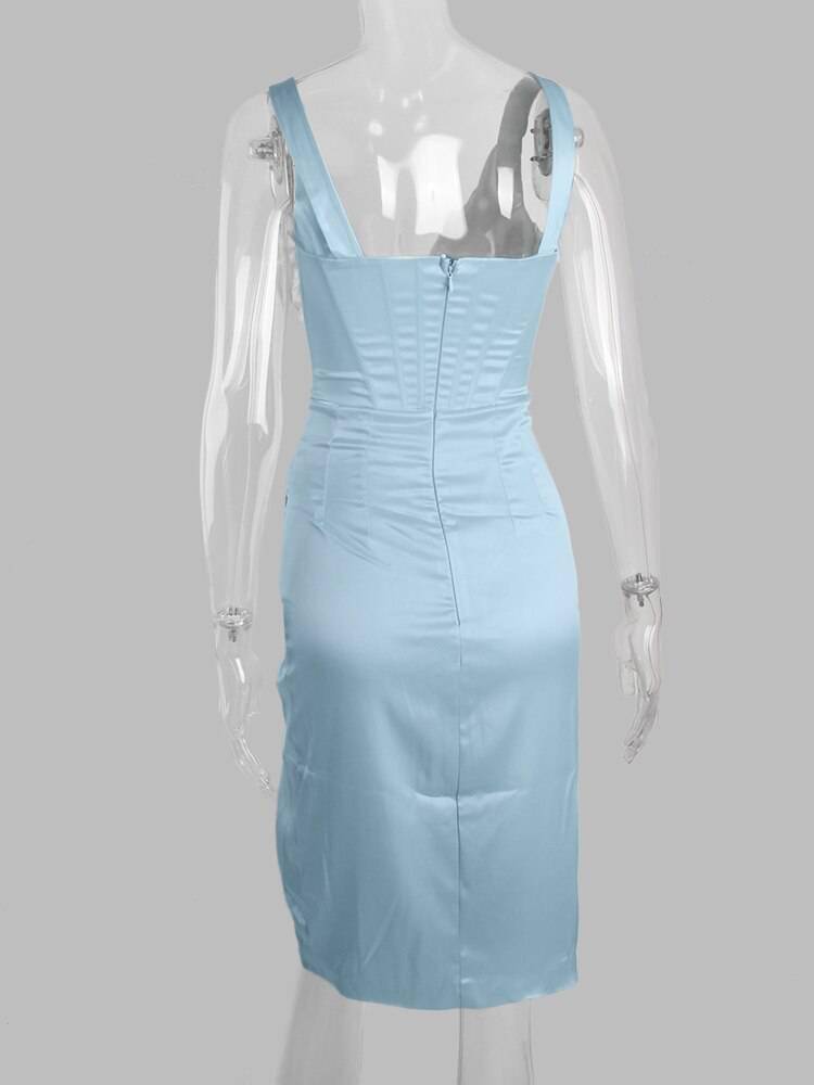 Slit Satin Corset Midi Dress Festival Club Party Dresses OUT0864