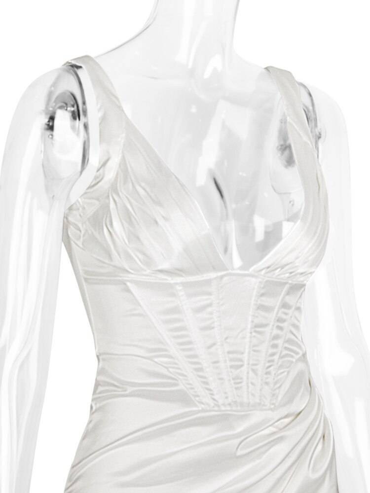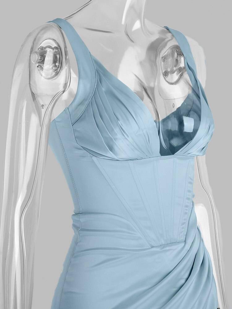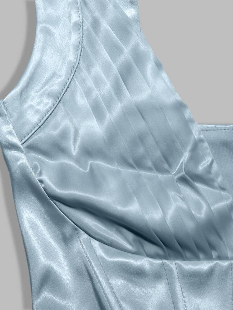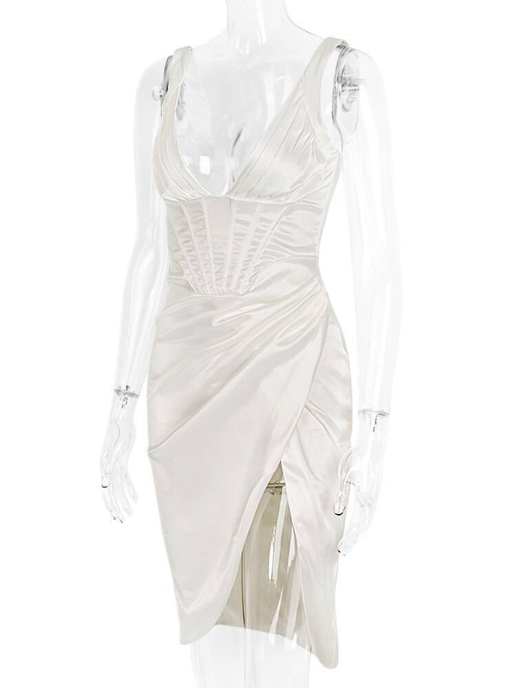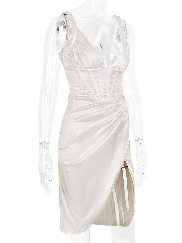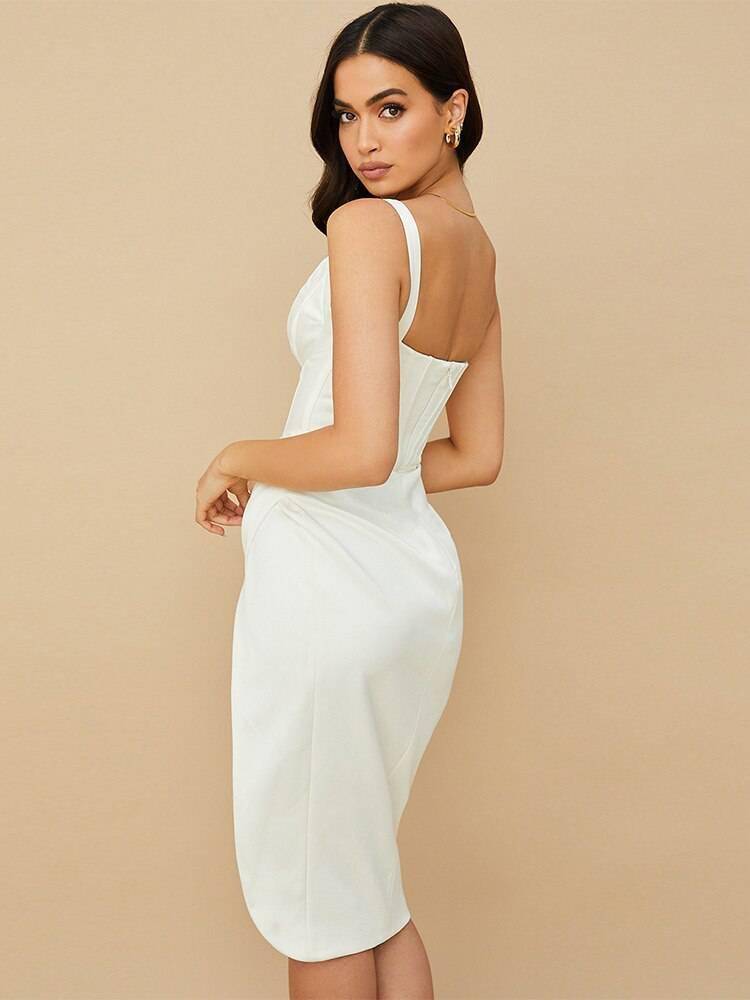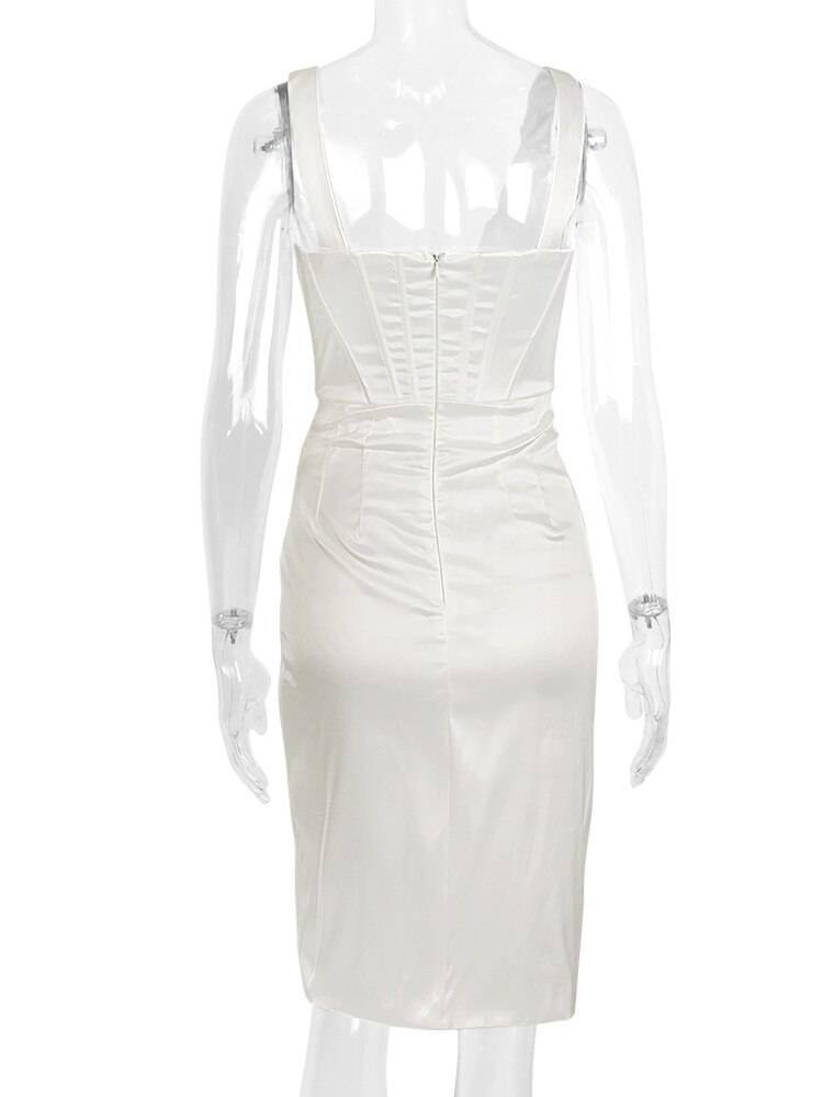 Slit Satin Corset Midi Dress Festival Club Party Dresses OUT0864