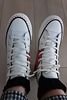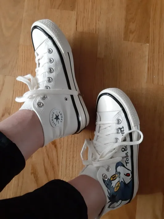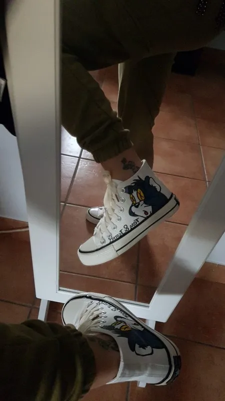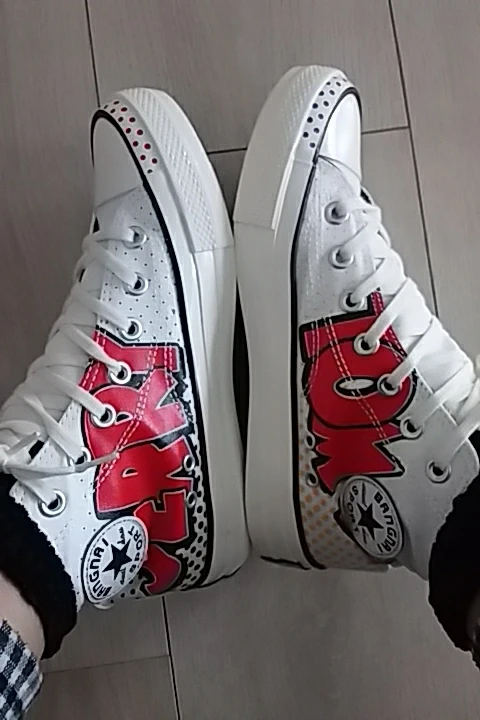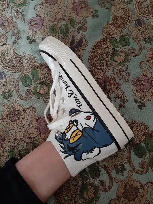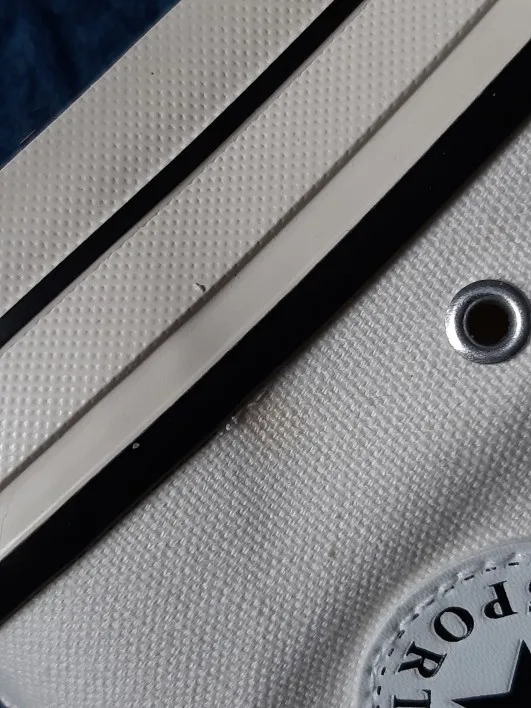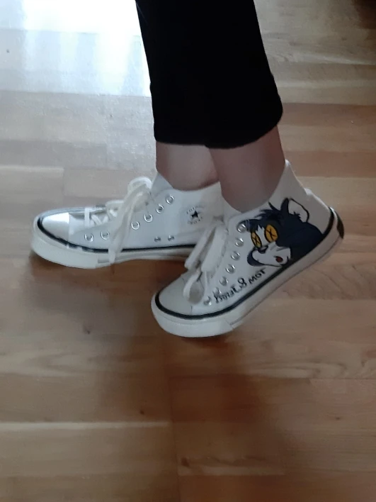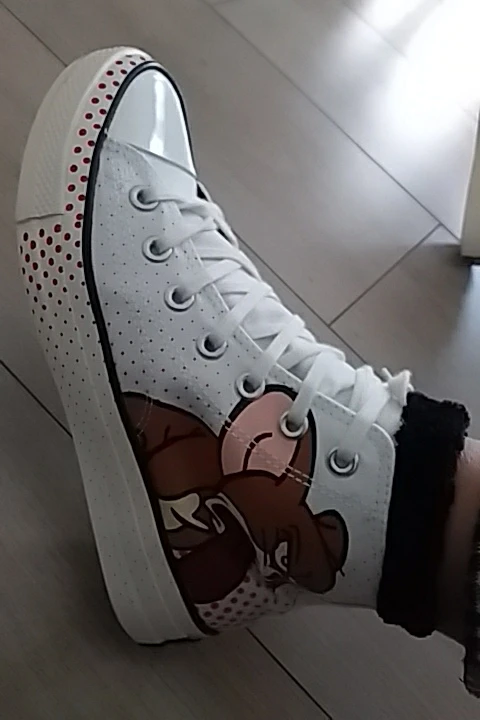 They look like in the picture. Keds came whole, without damage. On the outer surface on the white fabric there is a small yellow stain, but not critical. Keds are really small. At its 37 size ordered 38 and they butt. For its price look very good. In Moscow, the order was about two weeks. Thank you store!